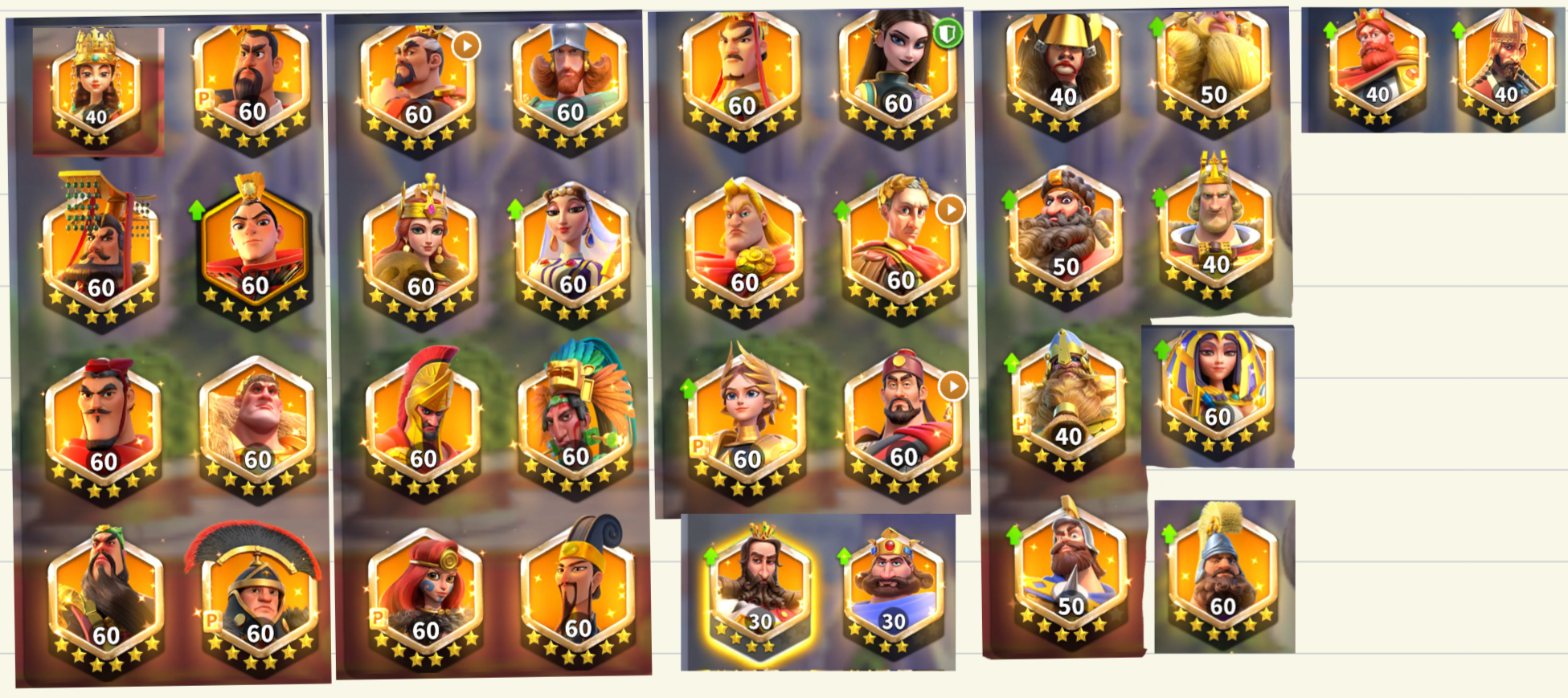 (孫武+華勒斯、白起+劉徹、嬴政+諸葛、霍去+亞瑟,其他有圖就不細說+有三個快覺醒 戈耳戈、鳳梨頭、花木蘭)