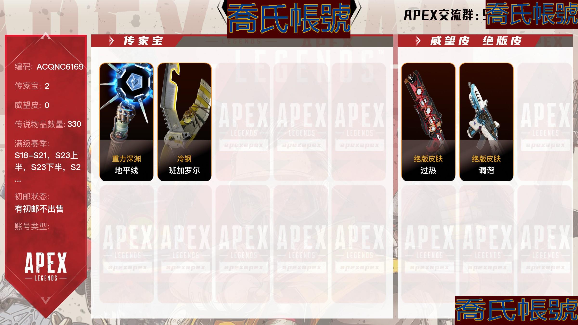 【OBACQNC616942】833級 白銀,金幣數量:50,金皮數量:330,傳家寶:2,稀有皮膚:2,7個賽季滿級,【賽季滿級7】賽季滿級:S18賽季,S19賽季,S20賽季,S21賽季,S23上半賽季,S23下半賽季,S25下半賽季; 【傳家寶2】:地平線-重力深淵,班加羅爾-冷鋼,【稀有皮膚2】過熱,調諧,【有初郵不出售】【官方截圖】