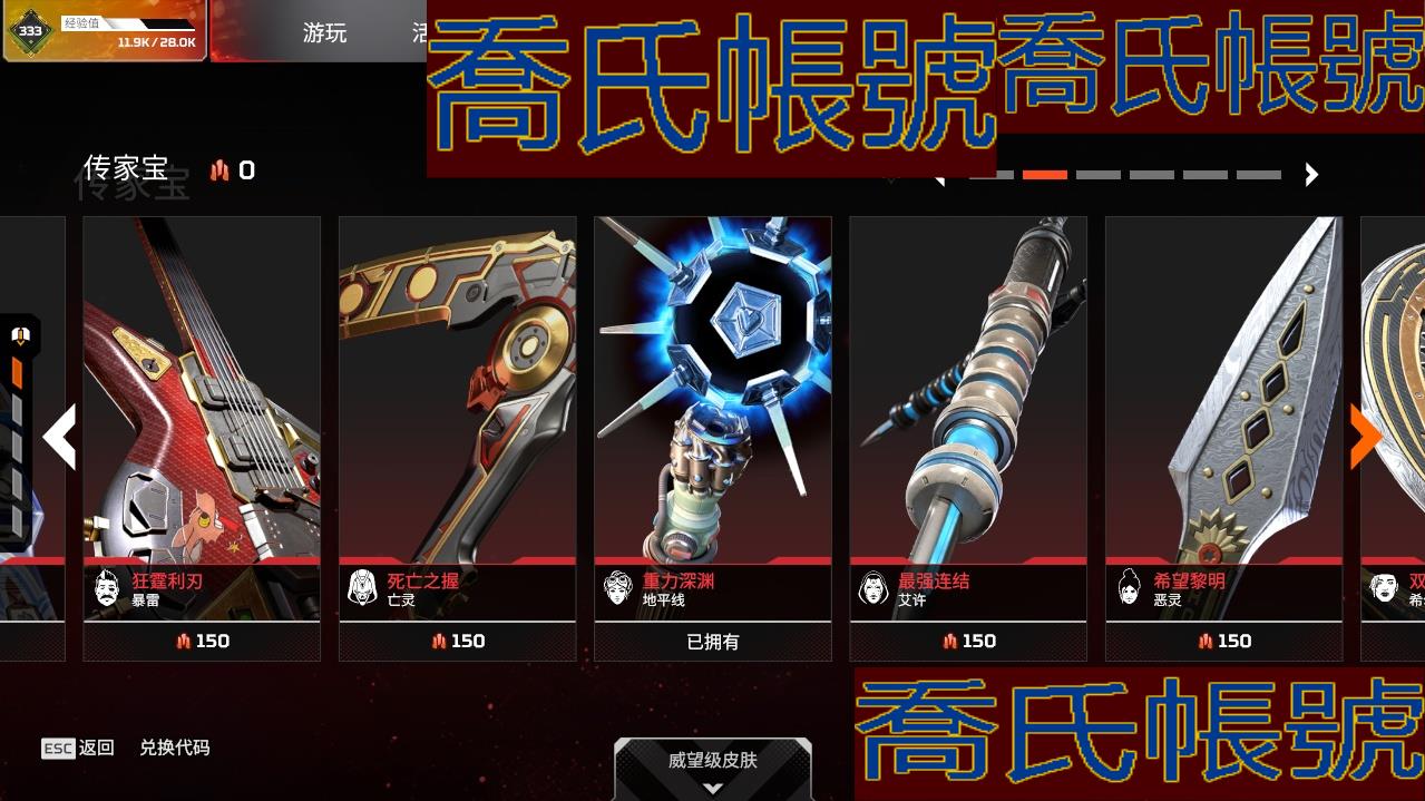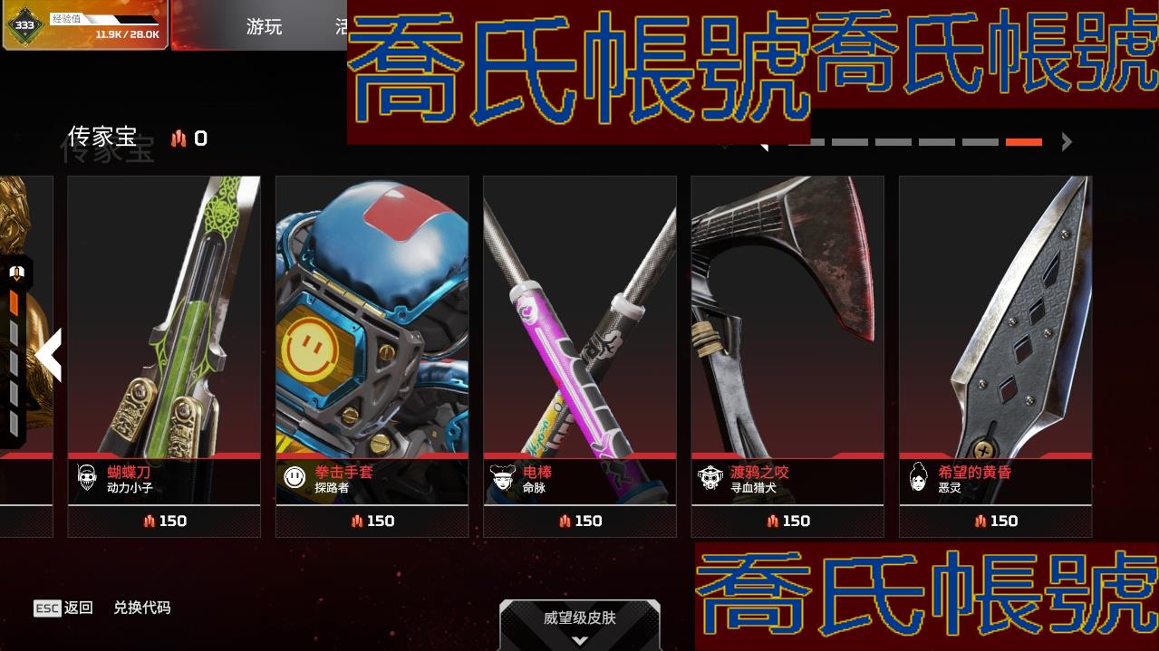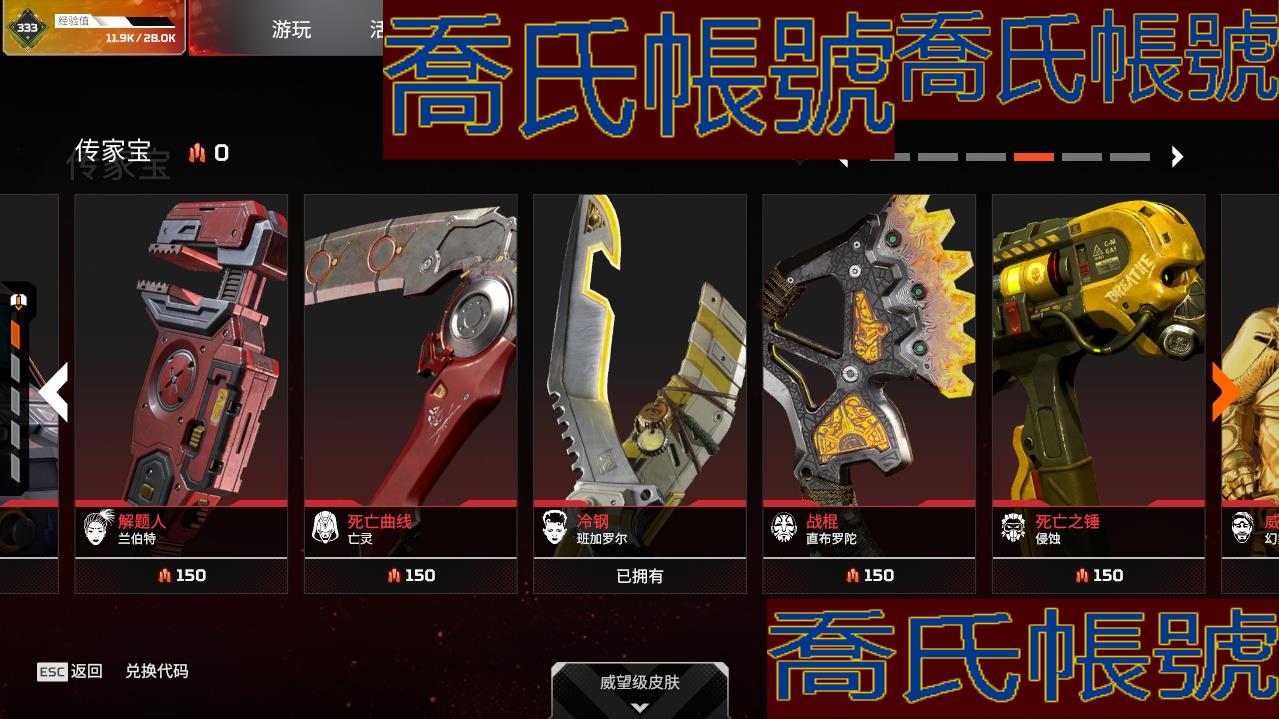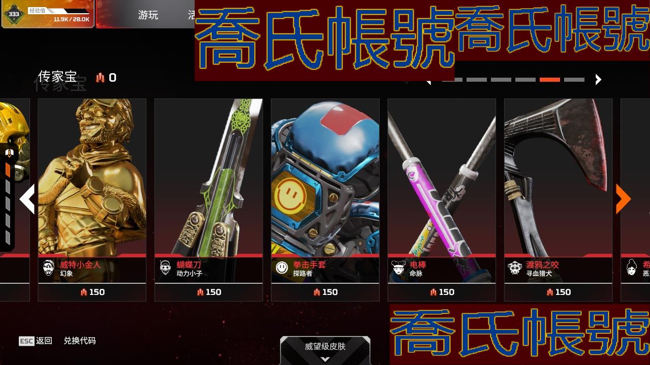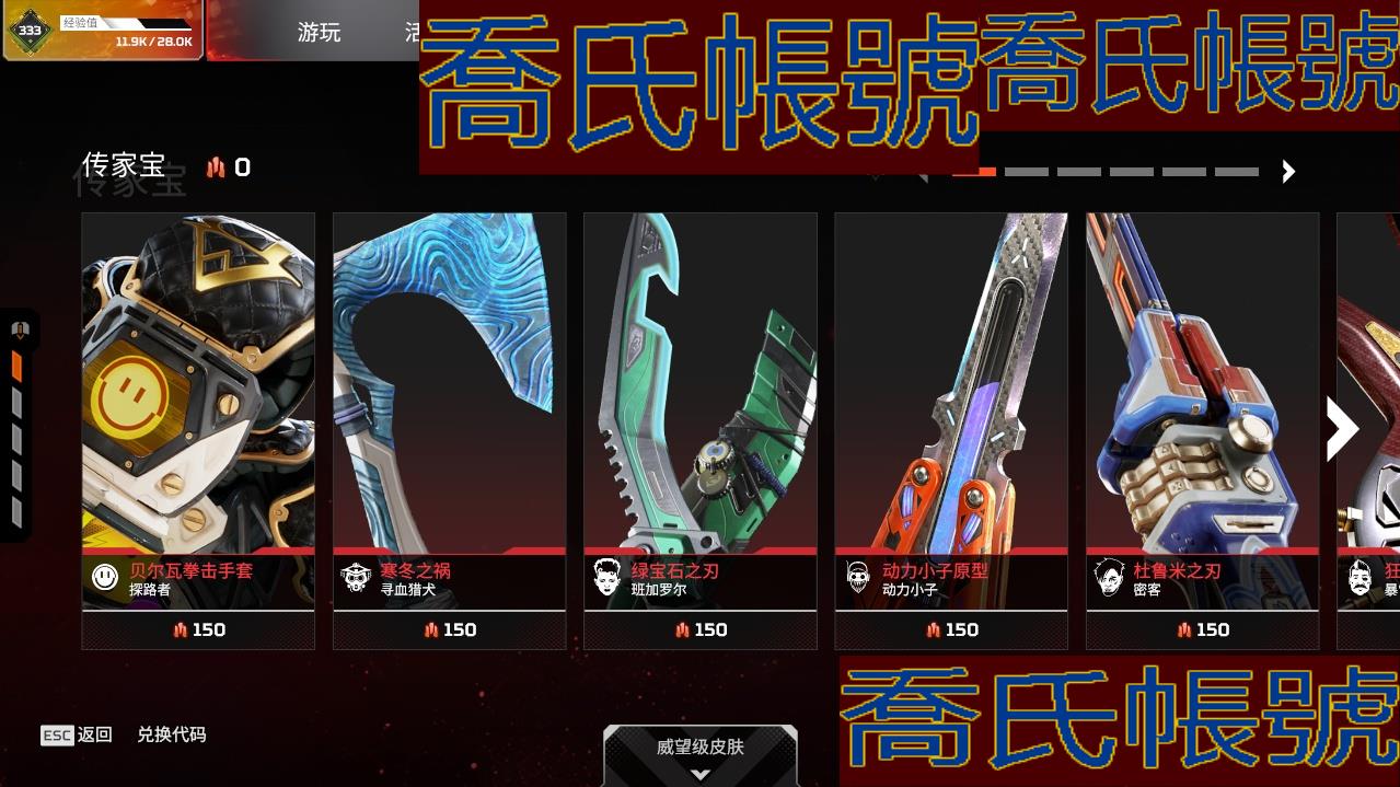 帳號 833級 白銀,金幣數量:50,金皮數量:330,傳家寶:2,稀有皮膚:2,7