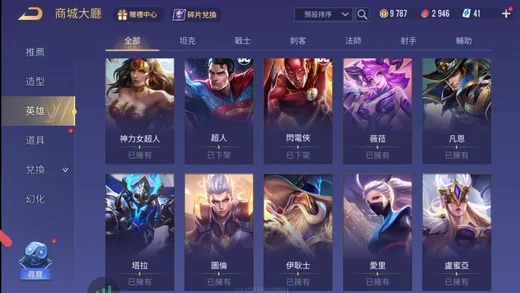 傳說對決台服帳 47英雄64造型 2.6萬金幣 女超人 有90奧義 20萬奧義碎片 無綁定帳 garena登入 安卓蘋果都可以