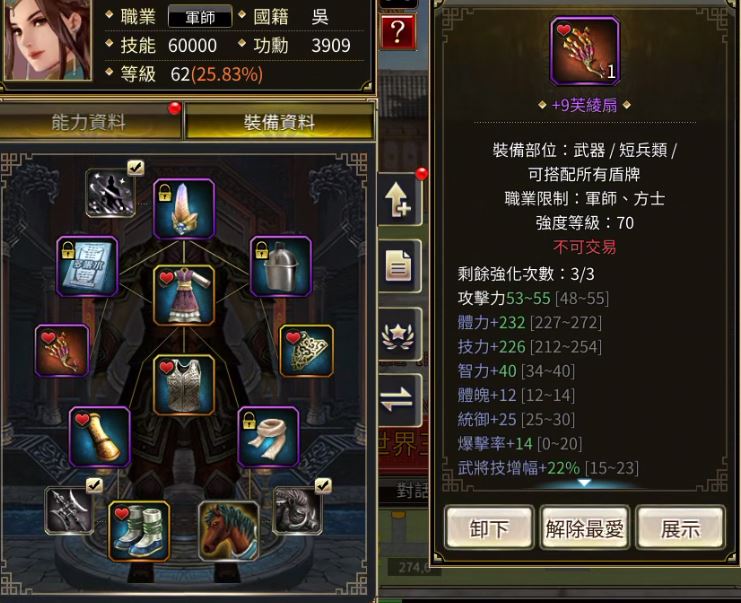 【62等】 軍師-62持續練等-銀元寶多-素材多~僅有基本技能