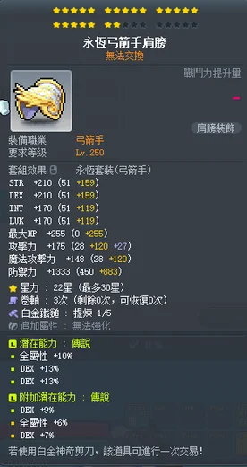 【永恆弓箭手肩膀】雙傳22星36%敏永恆弓箭手肩膀 附加976敏大三排 全b捲~