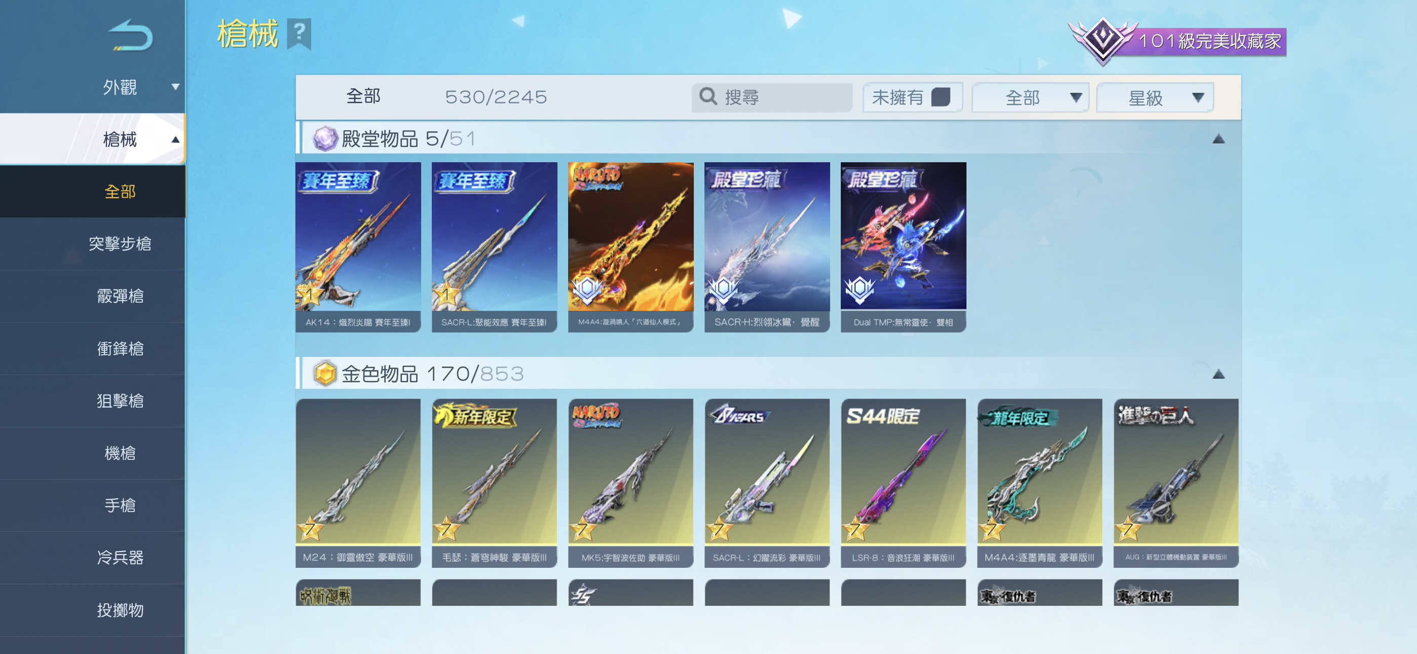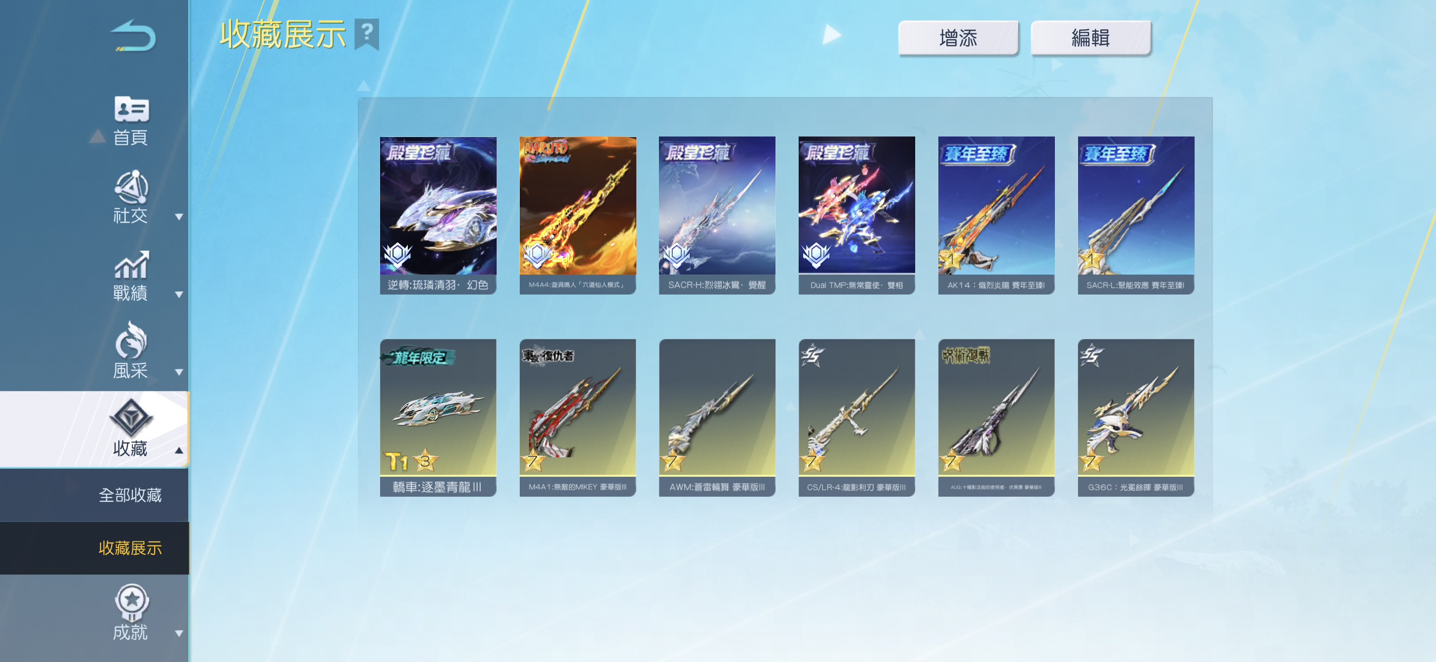 👑 六殿堂:最強電車【逆轉:琉璘清羽.幻色】、最新M4A4【漩渦鳴人:六道仙人.二相】、最頂SRCA-H【烈翎冰鸞.涅槃、雙槍【無常靈使.雙相】、SRCA-L【據能效應】、AK14【熾烈炎陽】