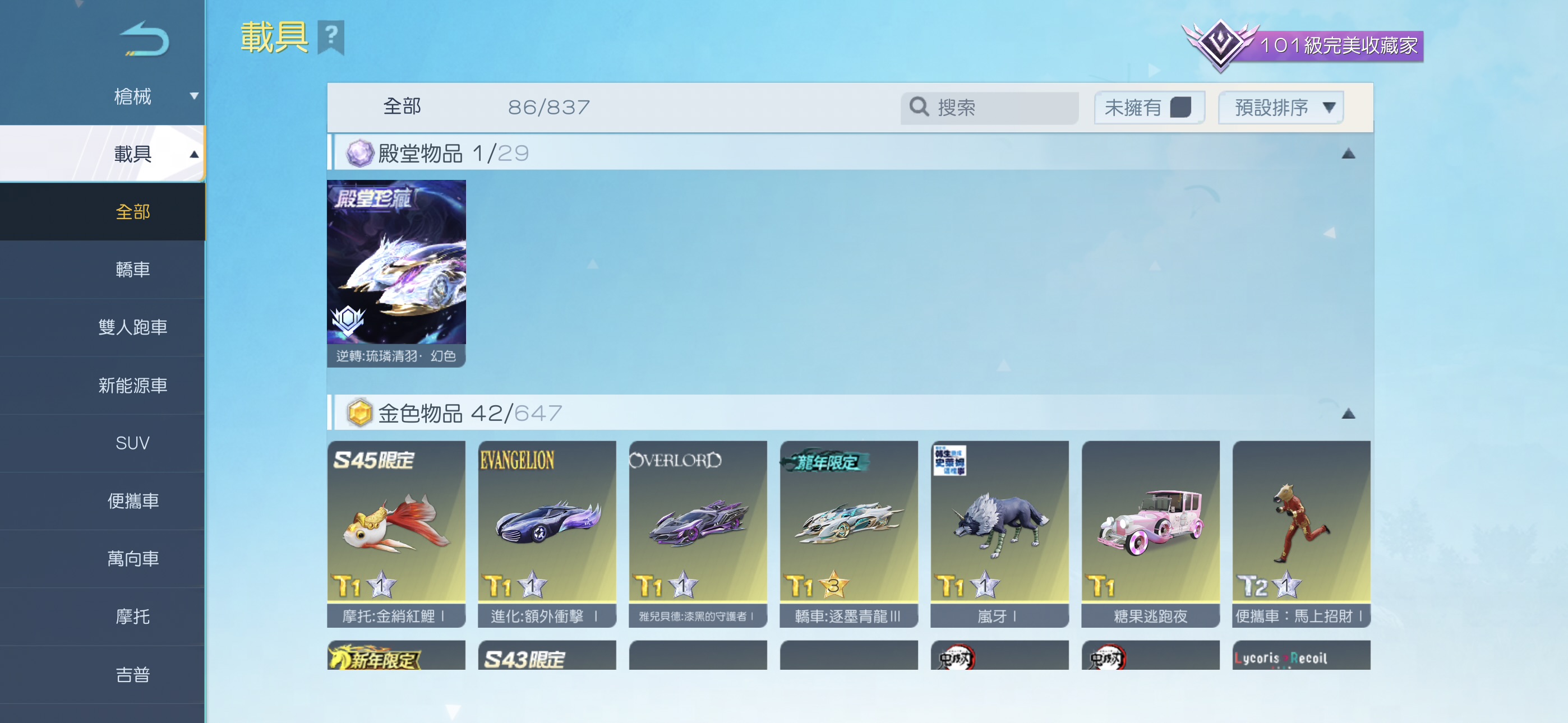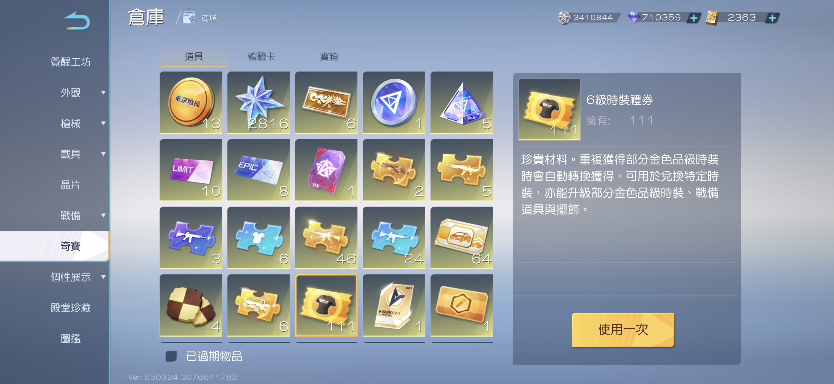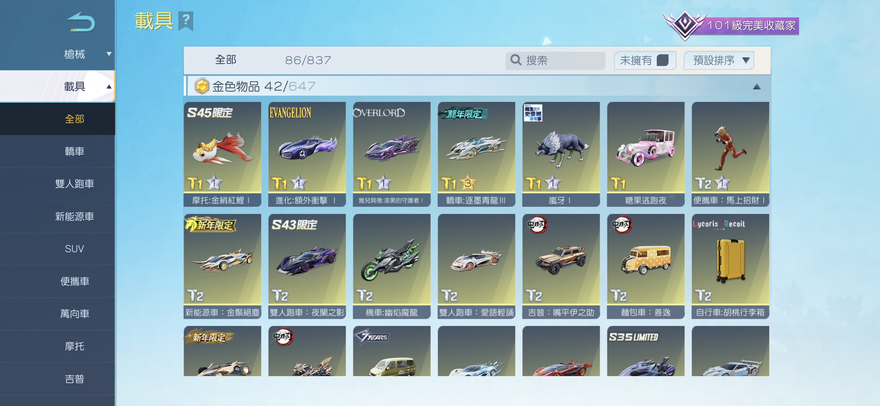💎 6張車卷、64張車升級卷、46張槍卷 、111張衣卷、630張軍需兌換卷(可直接換一台金車or喜歡的金裝)