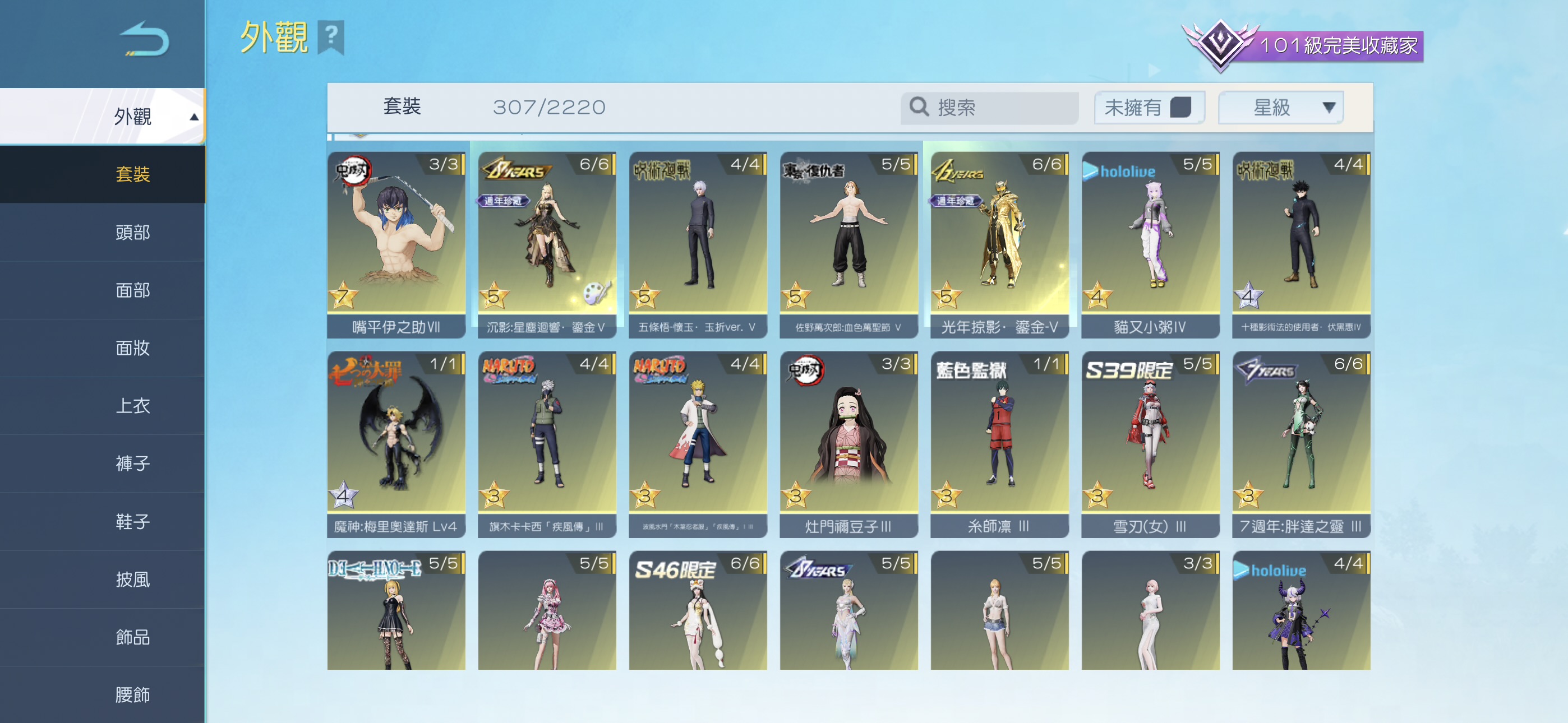 👕 8週年隱藏女V、五條悟V、佐野萬次郎V、嘴平伊之助VII、多頂裝