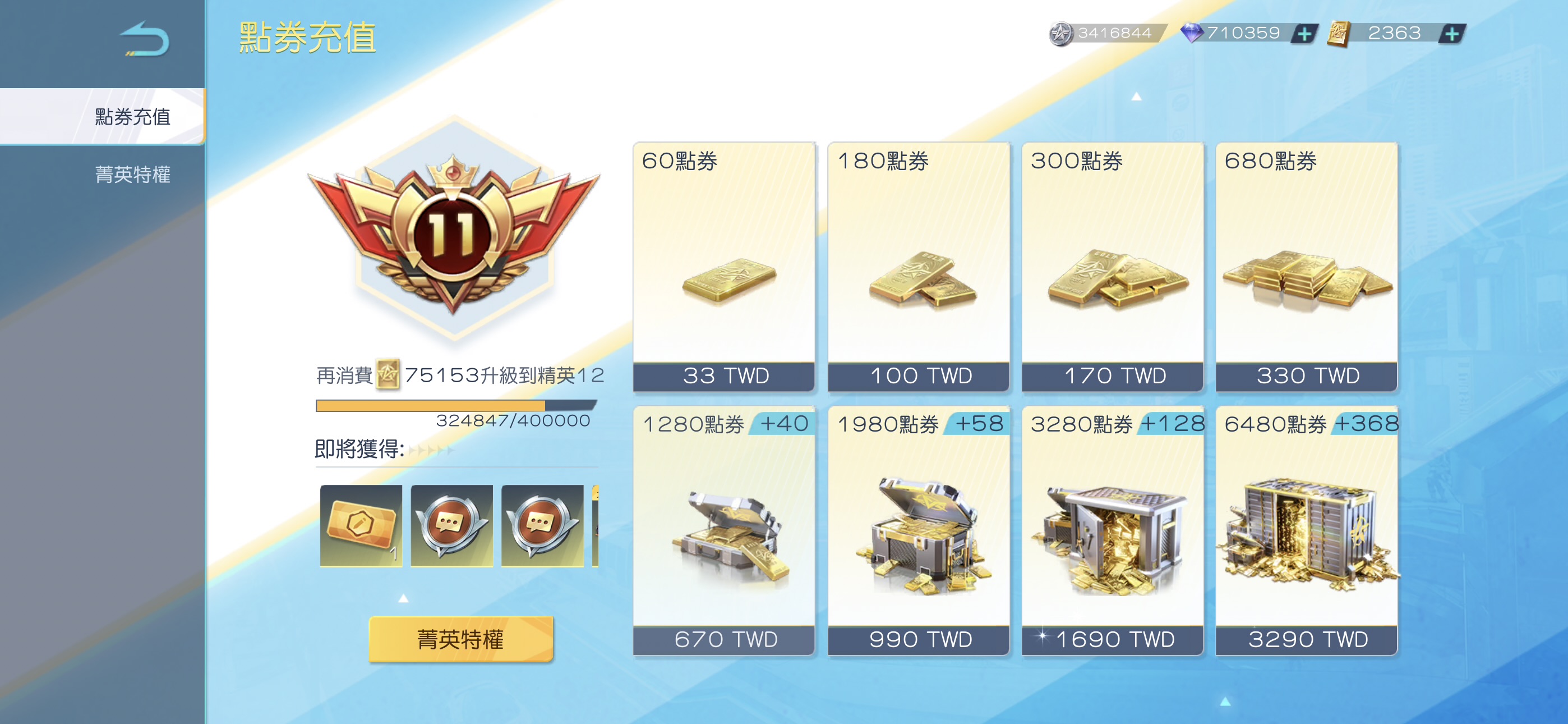 💎 24張賽季槍卷、6張賽季金裝卷、3張賽年槍芯、5張賽年至臻槍卷(本賽季永恆下賽季多一把殿堂)