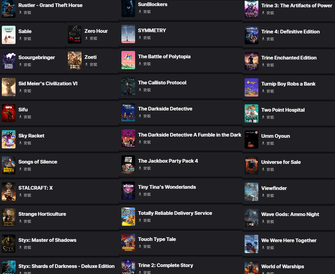 全軍破敵:三國、霍格華茲的傳承、死亡之島2、幽影行者2、卡利斯托協議、SIFU、文明帝國 VI