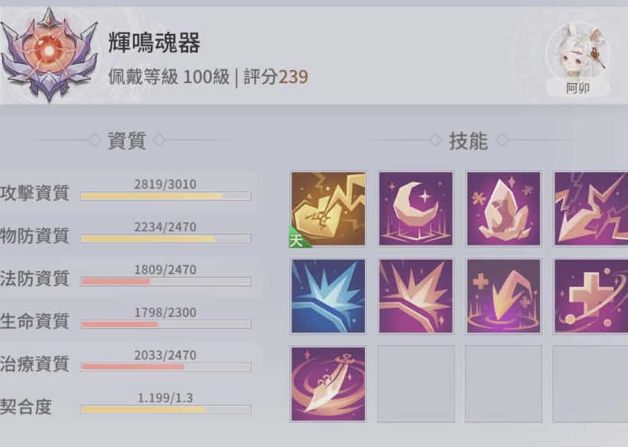 人物屬性:戰力33w上下小浮動,有天命樹加成+套裝屬性。