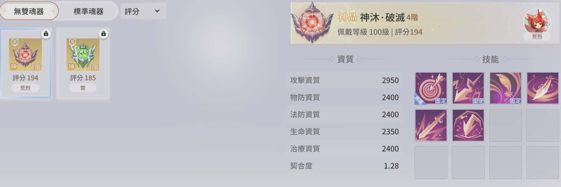 英靈內含:9技魂器、神沐破滅、聖禦 皆6技能紅全滿