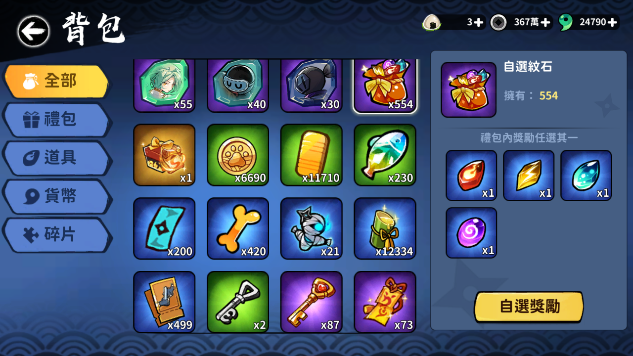 帳號 【初始號】 影忍一星:24700勾玉、87鑰匙、73結神符