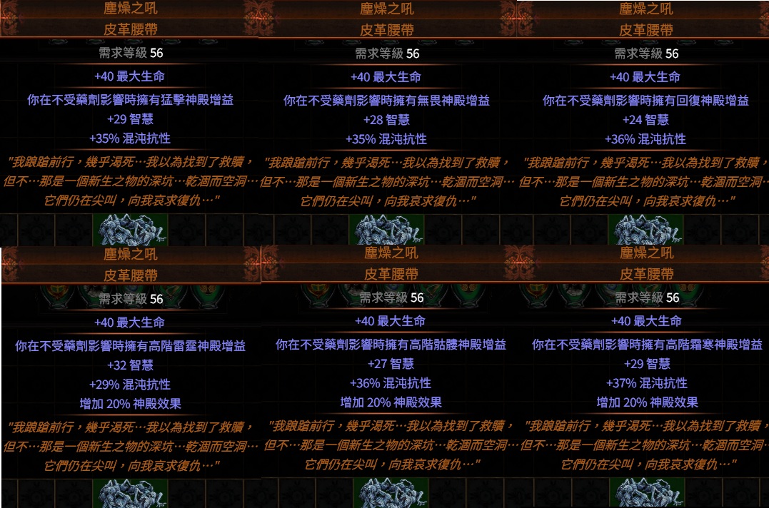 道具 高階神殿→塵燥之吼皮革腰帶(猛擊無畏回復霜寒雷霆骷髏威猛共鳴迅速迴響抗性漆黑鑽石