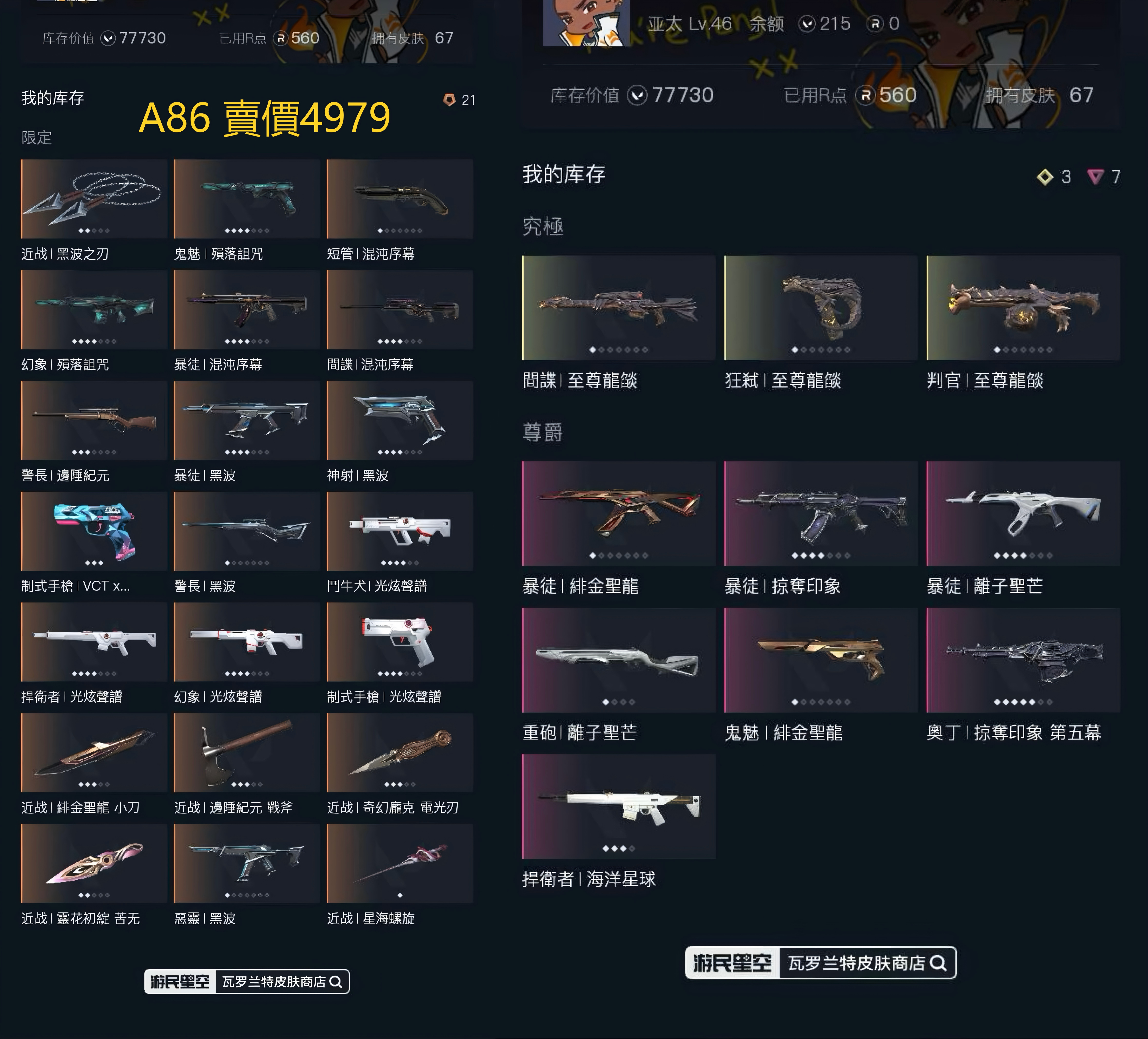 帳號 【未定級、61槍、6刀】 黑波套、聖龍套、靈花苦無、混沌、掠奪、離子、光炫、邊陲、全槍均有造型
