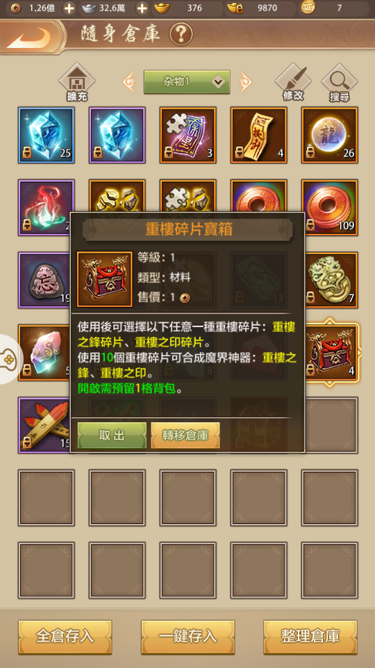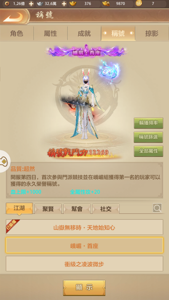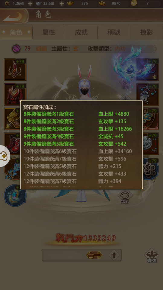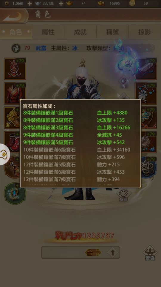 【79等】 玉山服 卡79峨嵋、武當戰力進度號