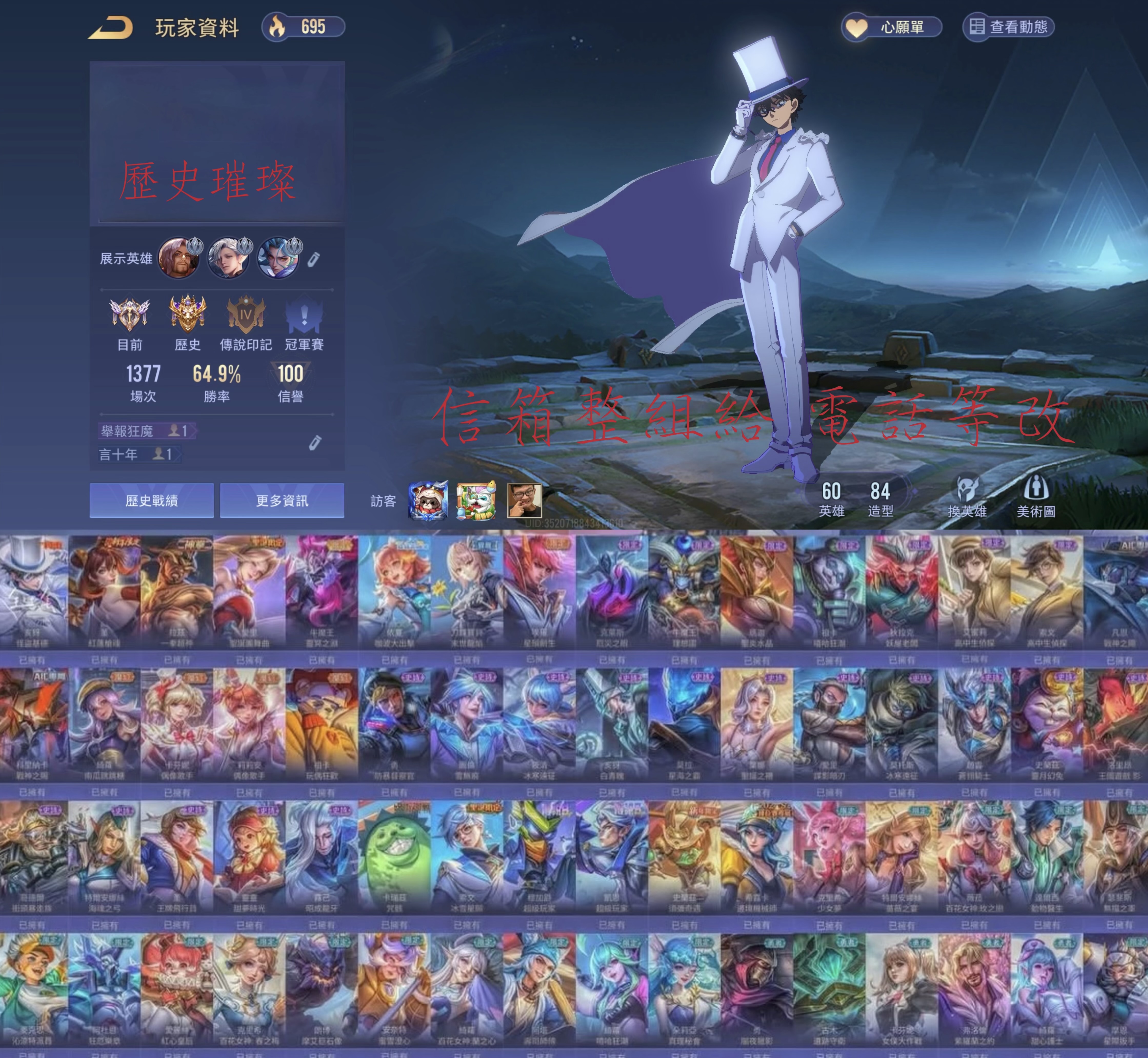 【Garena帳有綁定、星耀、無VIP、60英、84造】 基德帳