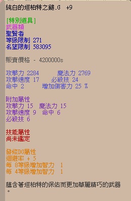 道具 G+9純白的坦柏特之鎚﹙純白聖賢鎚/聖賢純白縋﹚DG發條4 8智5迴 如圖鎖包賠