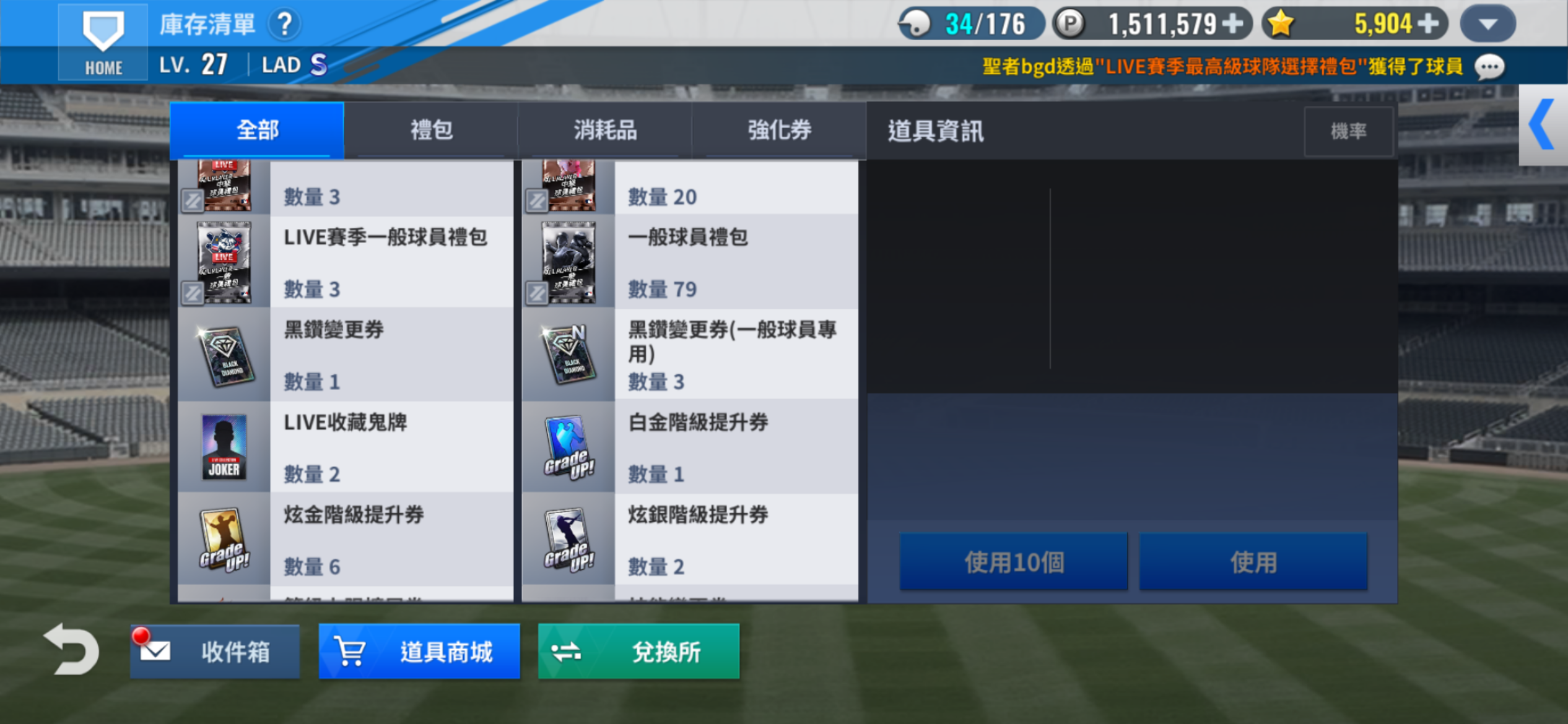 【108等】 道奇2卓越2一般黑鑽卡1通用黑鑽卡1階級提升卷