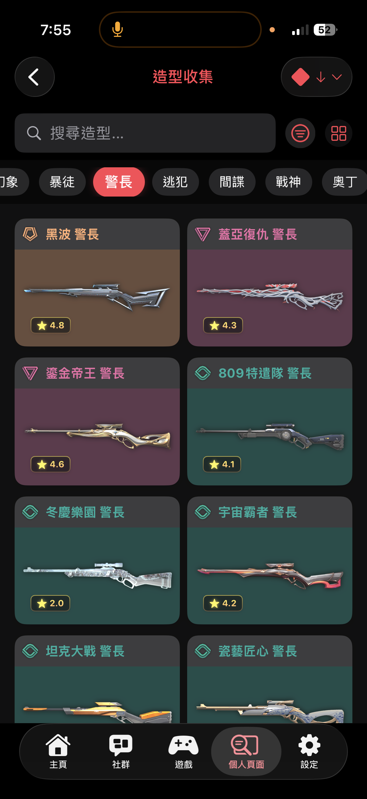 每把槍都有造型,很多主流手感槍都有,多款刀子造型,冠軍暴徒跟幻象全都有,另外有冠一爪刀、2025VCT爪刀、鳳凰扇及黑波套,還有VCT熱情如火吊飾,以及多款觀賽派對及絕版噴漆卡面,有吉茵珂絲卡面,價格方面可以討論,有興趣都可以詢問~