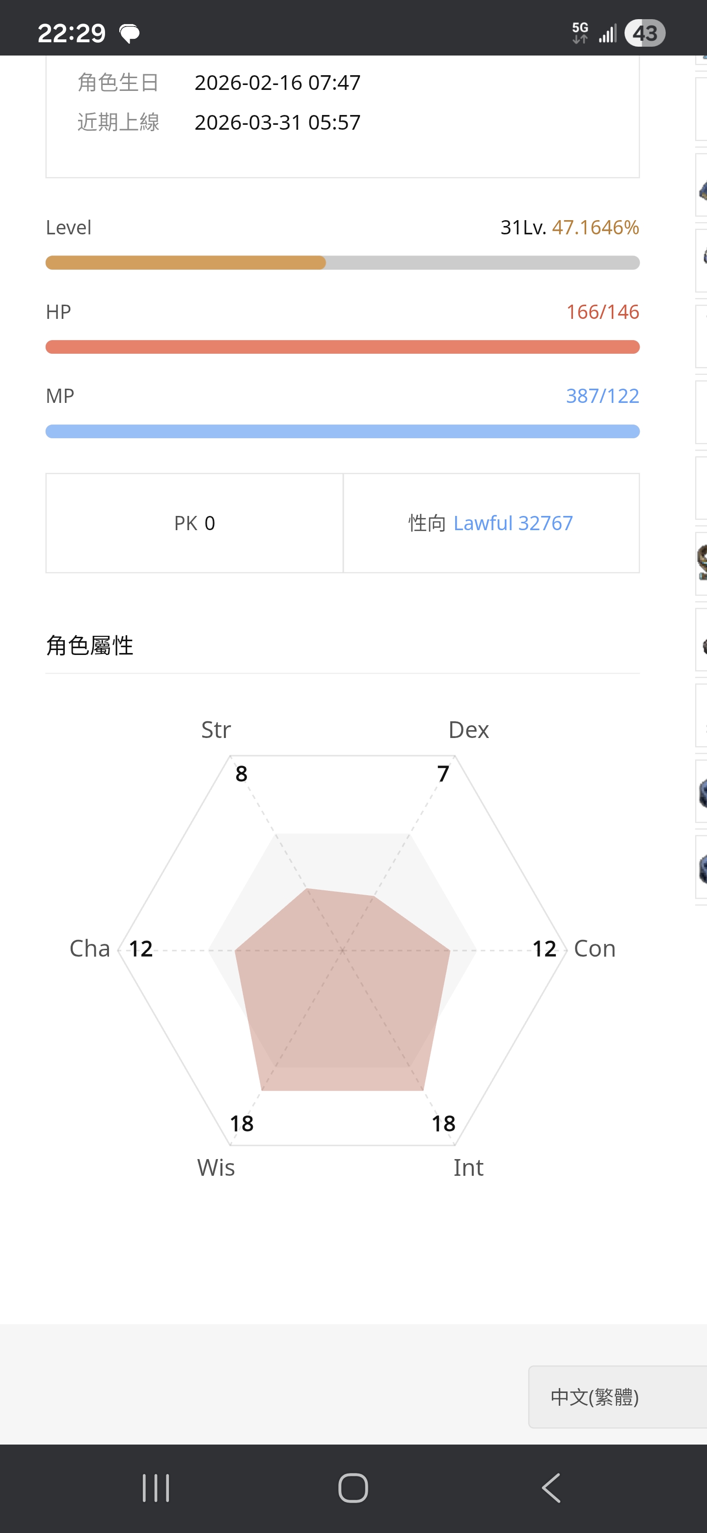 【31等、法師】 半人馬31等法師裝備法術內詳