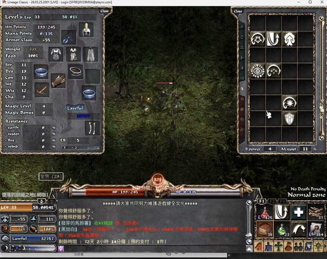 等級持續上升中~每日都會更新:目前33級77%!!!剛買活力藥水10包~活力紅水還有非常多!!!!