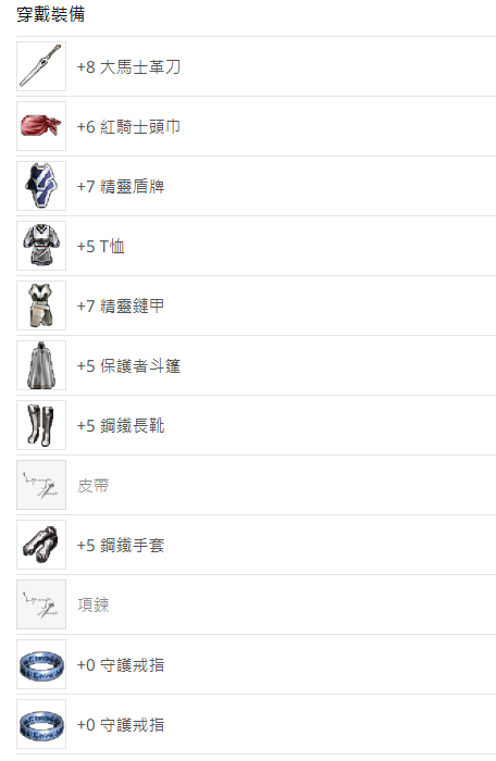 +5鋼手/+5鋼靴/+5保斗/+5內衣/+7精鏈/+7精盾/+6紅頭/守護戒指x2