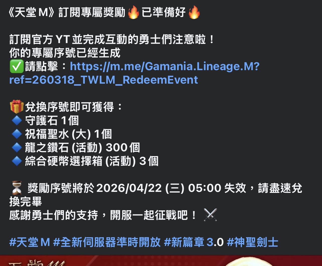 天堂m⋯⋯3.0板序號