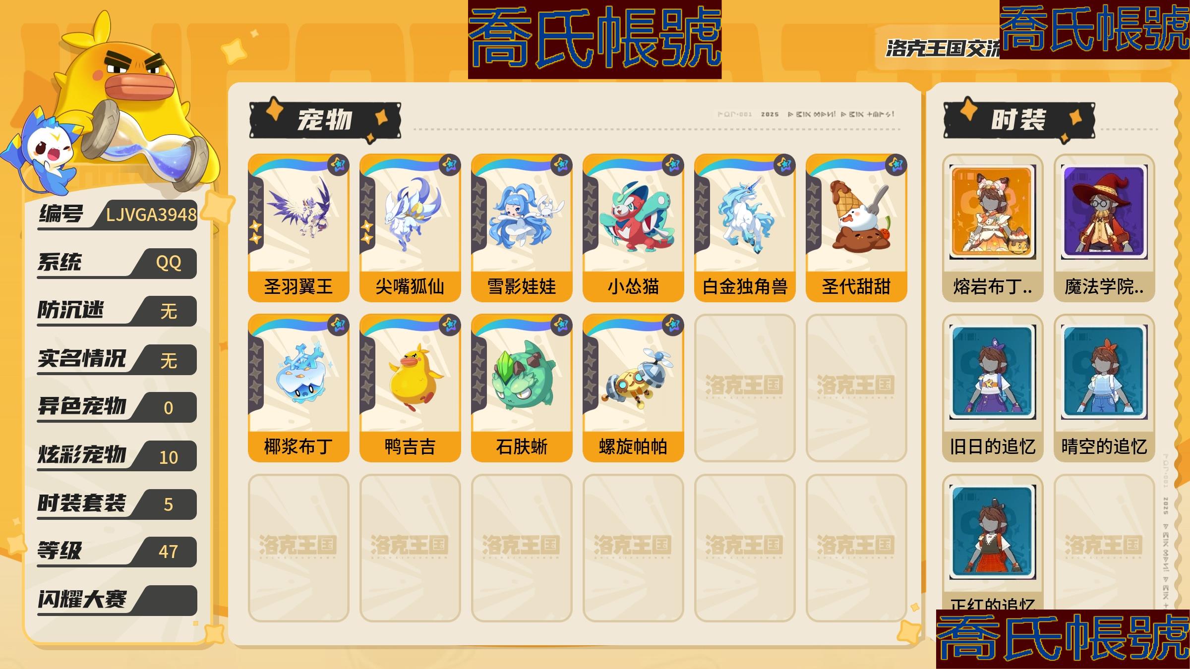 【OBLJVGA394842】男女主:女主,炫彩寵物數量:10,國王球:23,稜鏡球:2,許願星:288,炫彩:聖羽翼王(炫彩),尖嘴狐仙(炫彩),雪影娃娃(炫彩),小慫貓(炫彩),白金獨角獸(炫彩),聖代甜甜(炫彩),椰漿布丁(炫彩),鴨吉吉(炫彩),石膚蜥(炫彩),螺旋帕帕(炫彩),時裝套裝:熔岩布丁印象;詳情看圖【安卓QQ】【可二次實名】【無防沉迷】【官方截圖】寫錯了不出qq
