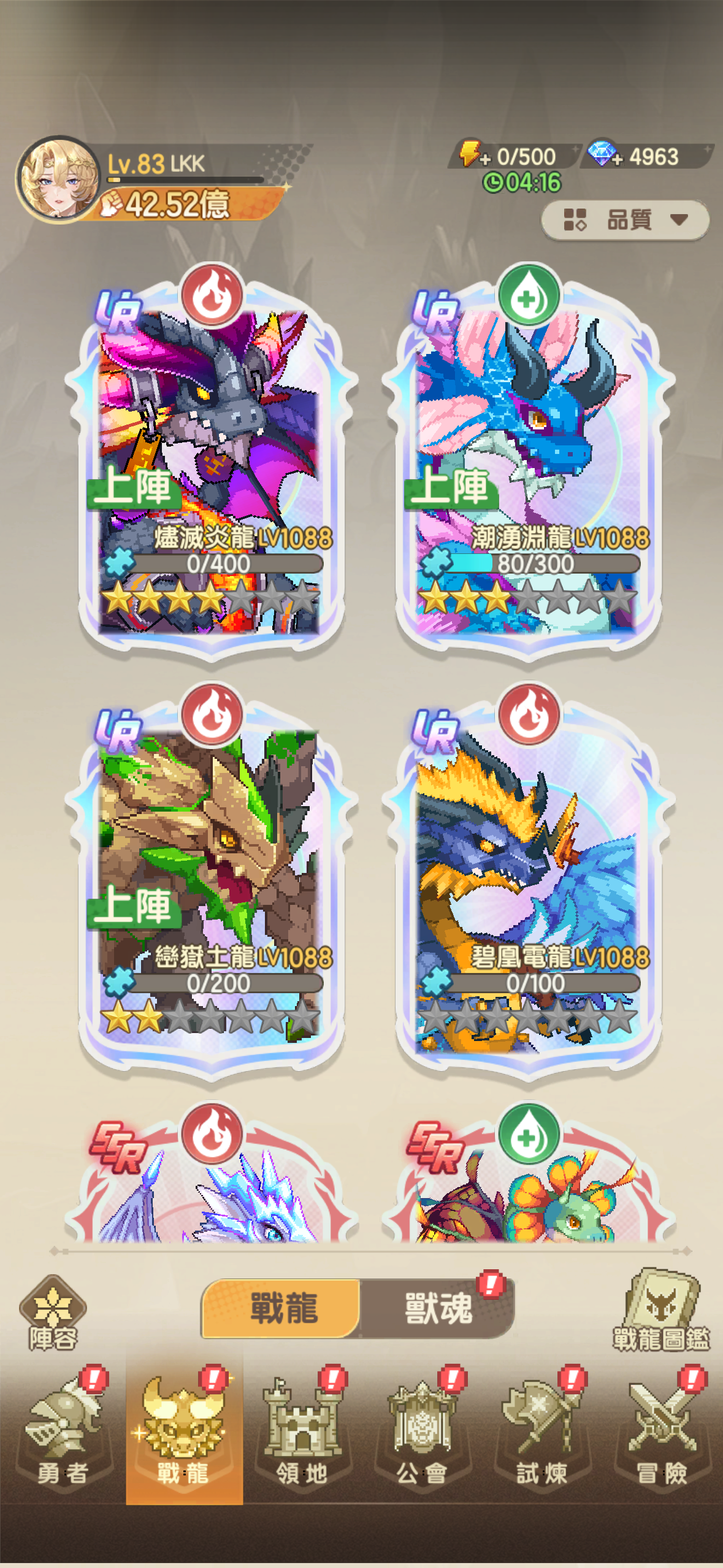 【83等】 S30 42E 9星魔隊 8星凜 4星炎龍 水龍快4星 其他如圖 誠可議