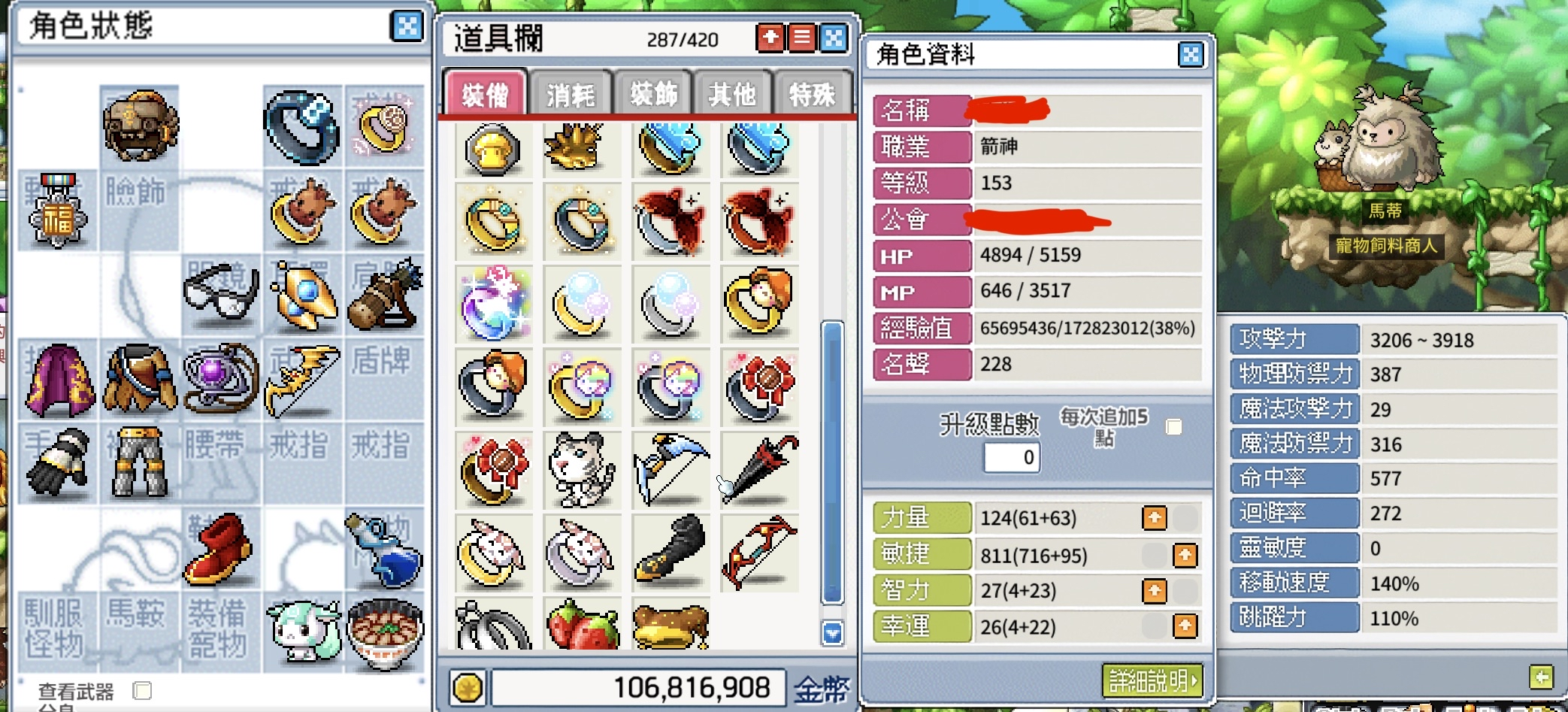 帳號 【153等、遊俠_箭神】 153 一手帳號 洗血跟滿/可雙改