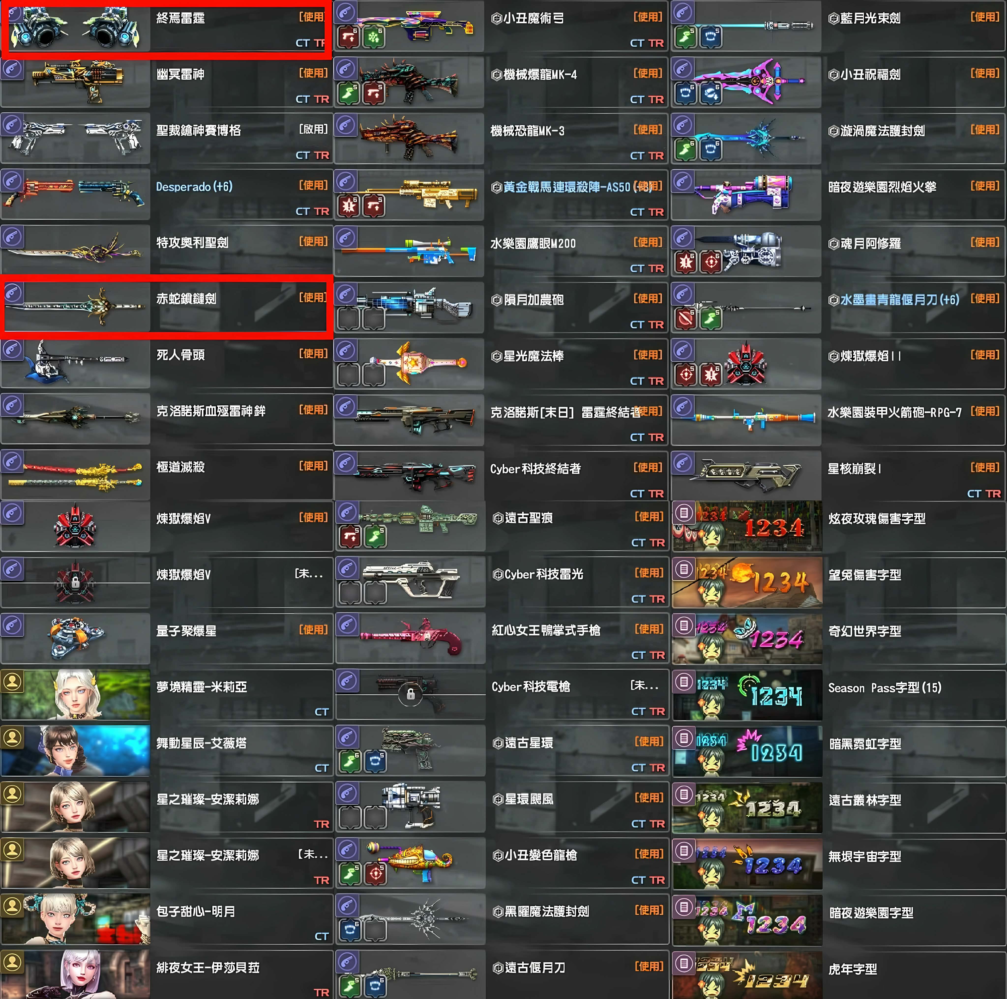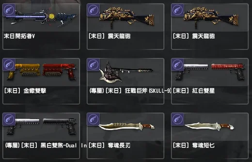 帳號 13史詩、3典藏、雙馬神、龍神、兔神、虎神、芬里爾、天地、天罰、白洞、冰皇、暗影
