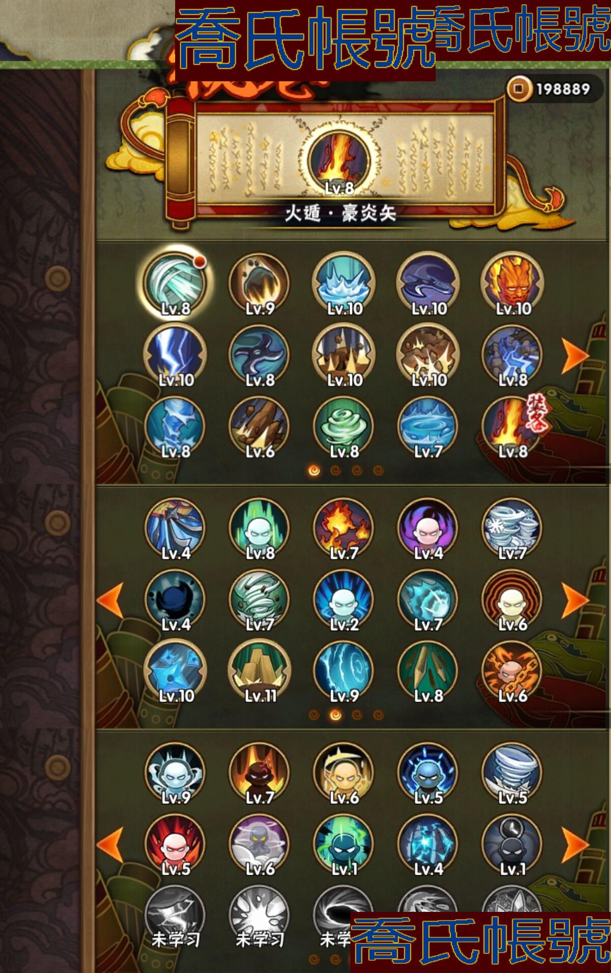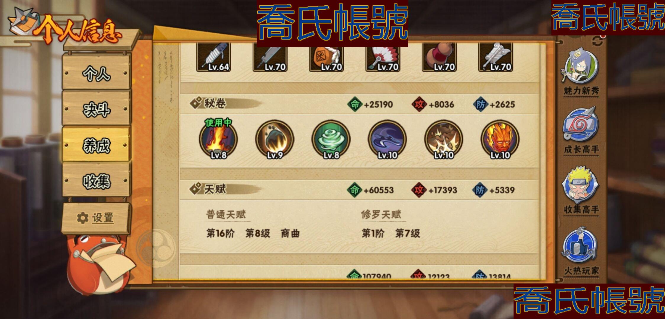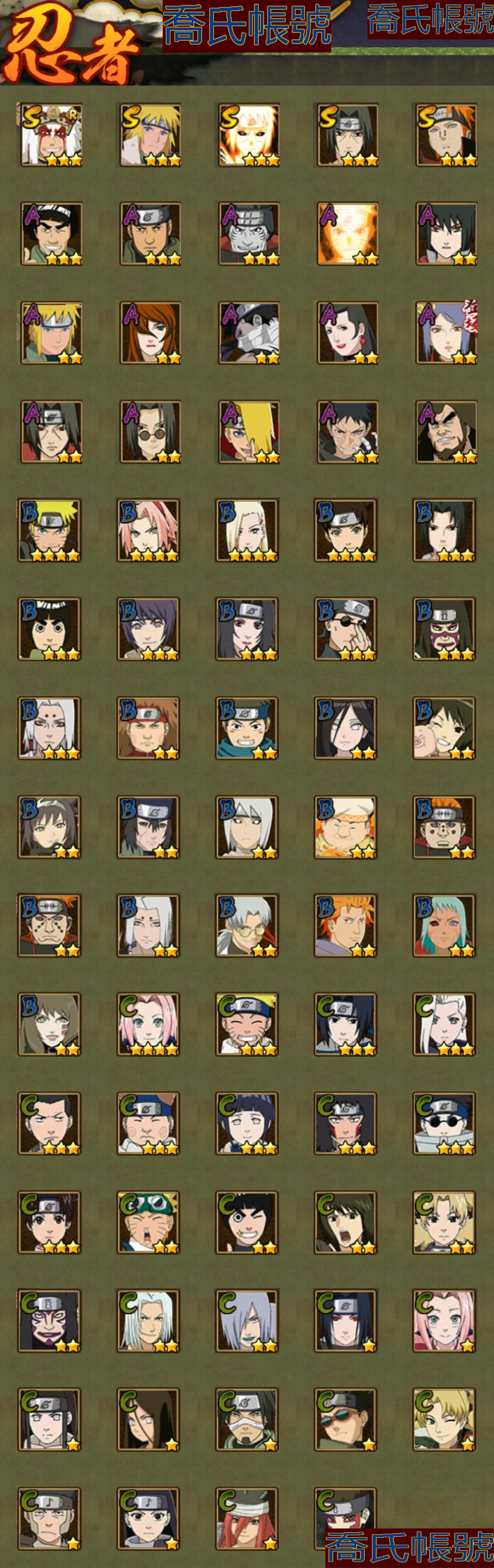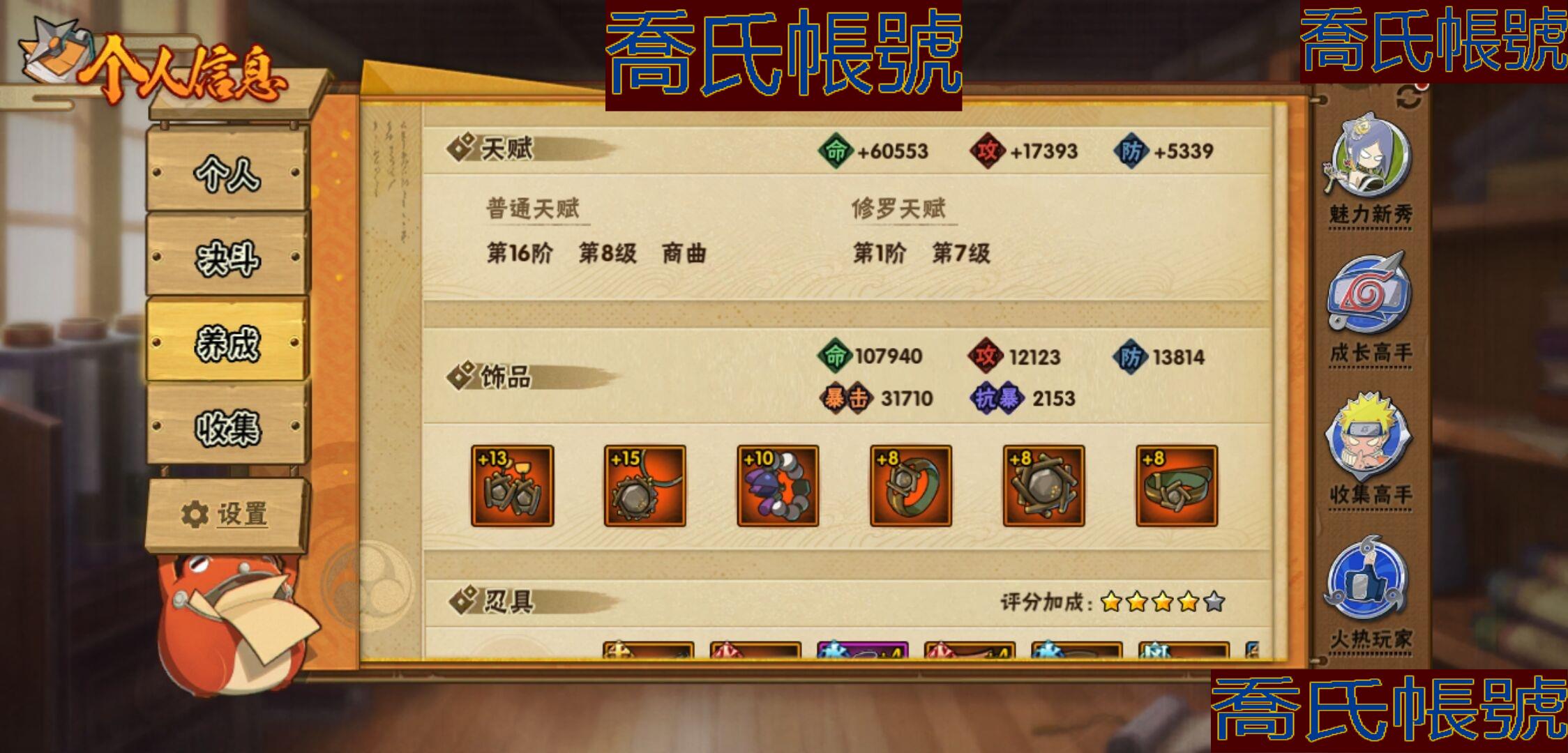 【OBHKAUE381042】S忍5個;A忍15個;時裝5個;通靈獸14個;秘卷40個;戰鬥力:291W+;主場景1個;段位:中忍2階;本服排名:4483;戰區排名:未上榜;VIP9級;S忍:九喇嘛連結波風水門,天道佩恩,舞之豪傑自來也,波風水門,須佐能乎宇智波鼬;A忍:漂泊浪客宇智波帶土,青年波風水門,九尾查克拉漩渦鳴人,新春限定小南,新春限定宇智波鼬,萬花筒寫輪眼宇智波佐助,五代目水影照美冥,迪達拉,邁特凱(3星),宇智波鼬,幹柿鬼鮫(3星),穢土轉生桃地再不斬,猿飛阿斯瑪(3星),不緣,羈絆神農;通靈獸:忍犬,藍蛇,蛤蟆吉,砂之守鶴,忍龜,鐮鼬,猿魔,山椒魚,蛞蝓,蜃,蛤蟆仙人,鮫鯊,蛤蟆健,熊貓;時裝:蜀面豪傑舞之豪傑自來也,百戰宇智波鼬須佐能乎,百戰佩恩天道,百戰波風水門,太極靈韻日向花火武當宗師;秘卷:風遁·真空波,土遁·地動,土遁·土柱爆,土遁·巖落,水遁·水貽拿原,通靈·護手裡劍,風遁·斬空波,雷遁·地走,通靈·返手裡劍,水遁·水龍捲,火遁·鬼燈籠,水遁·水衝波,火遁·豪炎失,土遁·土流槍,雷遁·雷電擊,木遁·扦插之術,幻術·黑暗行之術,封印術·四肢重封印,忍體術·反,冰遁·凍雪,冰遁·燕吹雪,木遁·一字連柱,掌仙術·活,幻術·此處非之術,通靈·雷光劍化,禁術·陰愈傷滅,解術·散,火遁·裂炎彈,封印術·除魔,水遁·水盾,風遁·風殺陣,解術·復,水遁·霧隱之術,忍體術·御,忍體術·怒,幻術·時間回溯,雷遁·四柱束縛,細患抽離之術,風遁·氣旋,秘卷·查克拉;主場景:博人傳;詳情看圖【3389】【安卓QQ】【不可二次實名】【官方截圖】