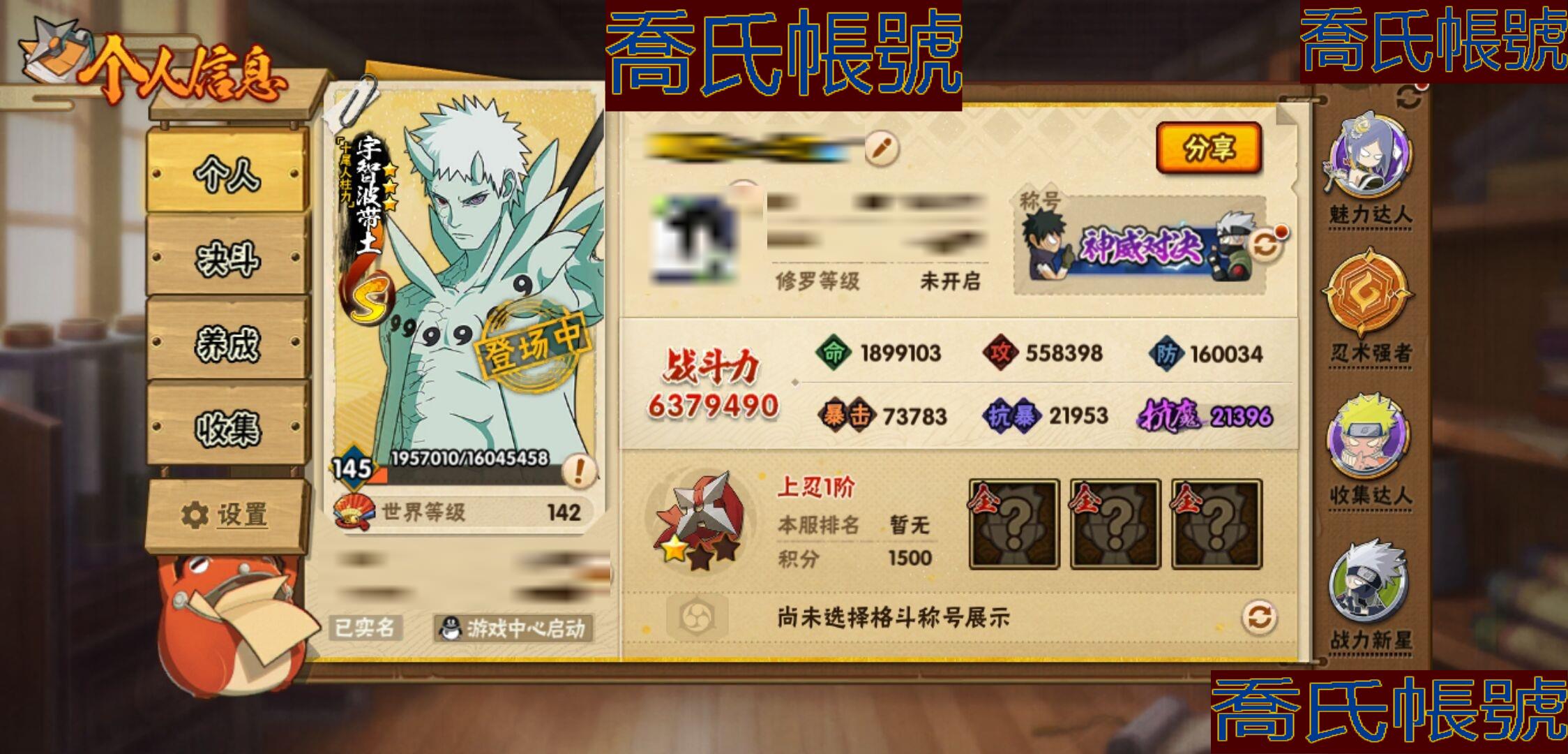 【OBHKAUE902842】S忍14個;A忍44個;時裝16個;通靈獸18個;秘卷31個;戰鬥力:637W+;主場景1個;段位:上忍1階;本服排名:862;戰區排名:未上榜;VIP11級;S忍:十尾人柱力宇智波帶土,穢土轉生解宇智波斑,白面具宇智波斑,忍界大戰宇智波帶土,須佐能乎旗木卡卡西,天道佩恩,漩渦鳴人宇智波佐助,穢土轉生千手柱間,舞之豪傑自來也,大蛇丸,波風水門,穢土轉生波風水門,穢土轉生宇智波斑,須佐能乎宇智波鼬;A忍:青春爆炸邁特凱,漂泊浪客宇智波帶土,仙人模式巳月,忍界大戰日向寧次,猿飛木葉丸,青年長門,穢土轉生迪達拉,宇智波止水,忍界大戰奇拉比,青年波風水門,青年艾,鮫肌融合幹柿鬼鮫,漂泊武士桃地再不斬,近松十人衛千代,半蛇斗篷藥師兜,須佐能乎宇智波佐助,九尾查克拉漩渦鳴人,惡靈之影飛段,曉大蛇丸,百豪春野櫻,忍界大戰秋道丁次,忍界大戰我愛羅,奇拉比,五代目水影照美冥,五代目雷影達魯伊,死司憑血飛段,疾風傳我愛羅(3星),迪達拉,飛段(3星),仙人模式漩渦鳴人,神威對決旗木卡卡西,邁特凱(4星),幹柿鬼鮫(3星),穢土轉生桃地再不斬,蠍(3星),緋流琥蠍,猿飛阿斯瑪(4星),桃式顯現漩渦博人,六代目水影長十郎,不動,宇智波泉奈,羈絆神農,忍界大戰土臺,初始形態機械鳴人;通靈獸:忍犬,藍蛇,蛤蟆吉,忍龜,鐮鼬,猿魔,山椒魚,蜃,蛤蟆仙人,鮫鯊,蛤蟆健,砂之守鶴,烏鴉,蛞蝓,蛤蟆龍,萬蛇,蛤蟆廣,豚豚;時裝:宿命連結漩渦鳴人宇智波佐助,蜀面豪傑舞之豪傑自來也,百戰宇智波鼬須佐能乎,百戰佩恩天道,百戰波風水門,百戰大蛇丸,太極靈韻日向花火武當宗師,血霧怪人幹柿鬼鮫,龍的傳人李洛克截拳宗師,緋櫻綻放春野櫻百豪,驚雷掠影達魯伊五代目雷影,傳說的光芒波風水門,朱霞呈祥神駒佑將小南,編織虛實宇智波鼬,可愛睡衣漩渦鳴人,剎那的藝術迪達拉;秘卷:土遁·地動,水遁·水龍捲,水遁·水貽拿原,雷遁·雷電擊,火遁·鬼燈籠,火遁·豪炎失,土遁·土柱爆,風遁·真空波,水遁·水衝波,通靈·返手裡劍,土遁·土流槍,雷遁·地走,土遁·巖落,通靈·護手裡劍,風遁·斬空波,通靈·雷光劍化,幻術·此處非之術,木遁·扦插之術,掌仙術·活,風遁·風殺陣,忍體術·反,封印術·四肢重封印,禁術·陰愈傷滅,封印術·除魔,冰遁·燕吹雪,水遁·水盾,木遁·一字連柱,幻術·黑暗行之術,冰遁·凍雪,火遁·裂炎彈,解術·散;主場景:博人傳;詳情看圖【1914】【安卓QQ】【不可二次實名】【官方截圖】急需用錢