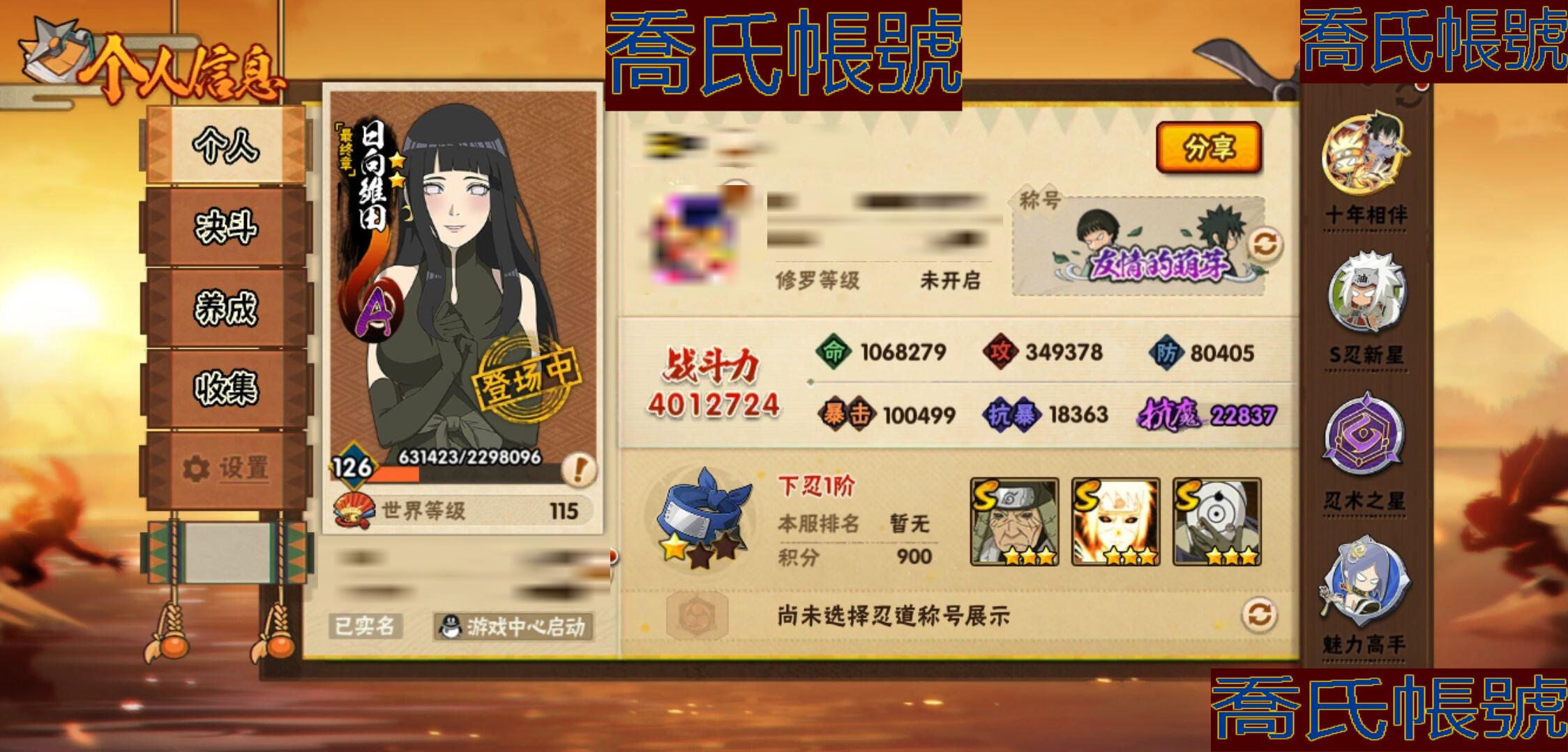 【OBHKAUE528642】S忍7個;A忍19個;時裝7個;通靈獸17個;秘卷31個;戰鬥力:401W+;主場景1個;段位:下忍1階;本服排名:394;戰區排名:未上榜;VIP11級;S忍:白面具宇智波斑,九喇嘛連結波風水門,五影會談宇智波斑,漩渦鳴人宇智波佐助,舞之豪傑自來也,須佐能乎宇智波鼬,穢土轉生猿飛日斬;A忍:青春爆炸邁特凱,仙人模式巳月,俠隱江湖宇智波佐助,九尾查克拉漩渦鳴人,忍界大戰秋道丁次,黑絕,迪達拉,飛段,邁特凱,宇智波鼬,夏日限定宇智波鼬,幹柿鬼鮫(3星),穢土轉生桃地再不斬,猿飛阿斯瑪(3星),最終章日向雛田,羈絆神農,夏日限定黑土,忍界大戰土臺,初始形態機械鳴人;通靈獸:忍犬,藍蛇,砂之守鶴,蛤蟆吉,忍龜,鐮鼬,猿魔,山椒魚,蛞蝓,蜃,蛤蟆仙人,鮫鯊,蛤蟆健,威裝須佐十週年,豚豚,烏鴉;時裝:蜀面豪傑舞之豪傑自來也,宿命連結漩渦鳴人宇智波佐助,百戰宇智波鼬須佐能乎,燼影絕蹤宇智波佐助俠隱江湖,晴浪礁歌黑土夏日限定,朱霞呈祥神駒佑將小南,可愛睡衣漩渦鳴人;秘卷:土遁·地動,水遁·水龍捲,水遁·水貽拿原,雷遁·雷電擊,火遁·鬼燈籠,火遁·豪炎失,土遁·土柱爆,風遁·真空波,水遁·水衝波,通靈·返手裡劍,土遁·土流槍,雷遁·地走,土遁·巖落,通靈·護手裡劍,風遁·斬空波,通靈·雷光劍化,幻術·此處非之術,木遁·扦插之術,掌仙術·活,風遁·風殺陣,忍體術·反,封印術·四肢重封印,禁術·陰愈傷滅,封印術·除魔,冰遁·燕吹雪,水遁·水盾,木遁·一字連柱,幻術·黑暗行之術,冰遁·凍雪,火遁·裂炎彈,解術·散;主場景:博人傳;詳情看圖【4587】【安卓QQ】【不可二次實名】【官方截圖】戰力 v等級:401W V11 碎片:十尾帶土32片 通靈: 蛞蝓 金幣:1112 忍法帖:40級豪華忍法帖 大小月卡:13天