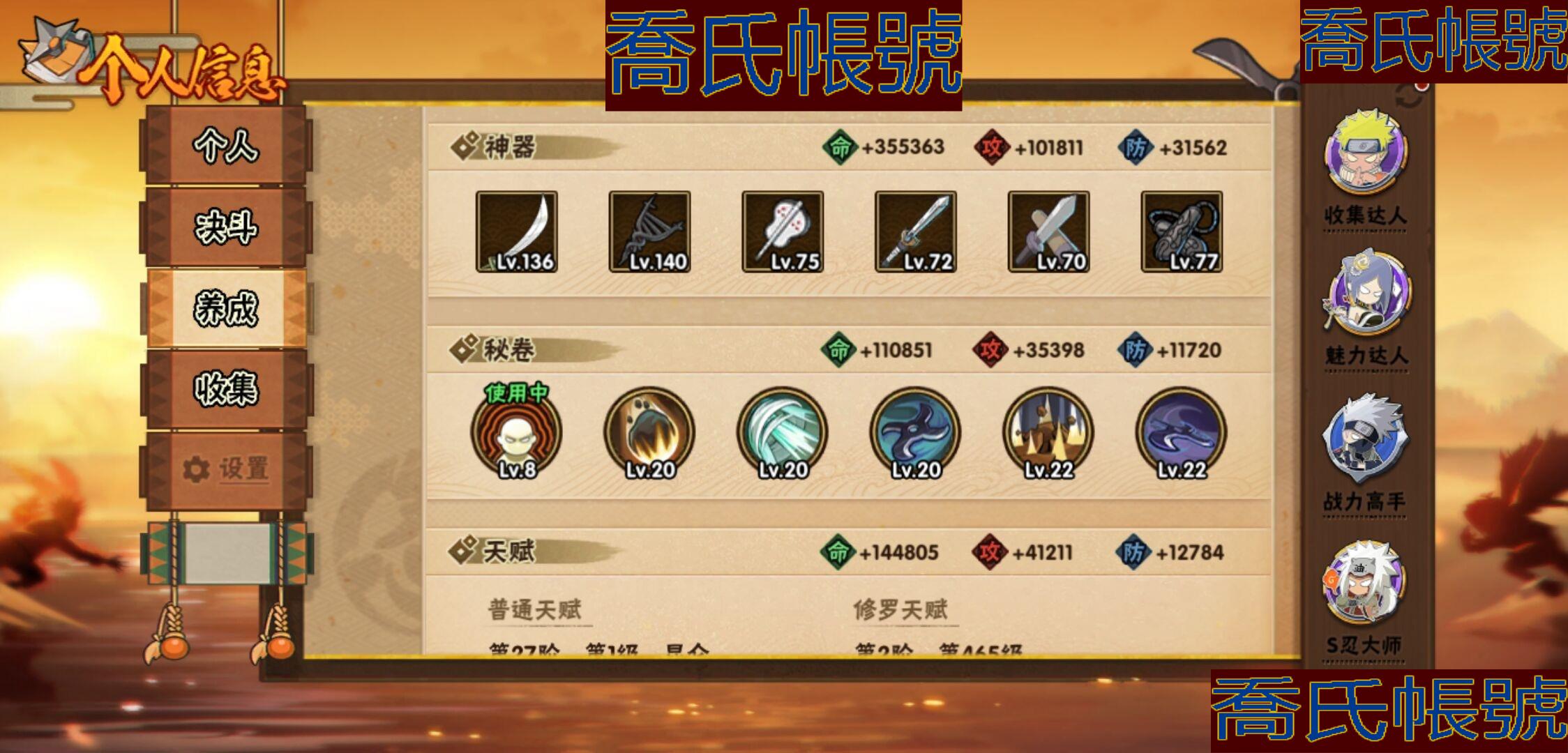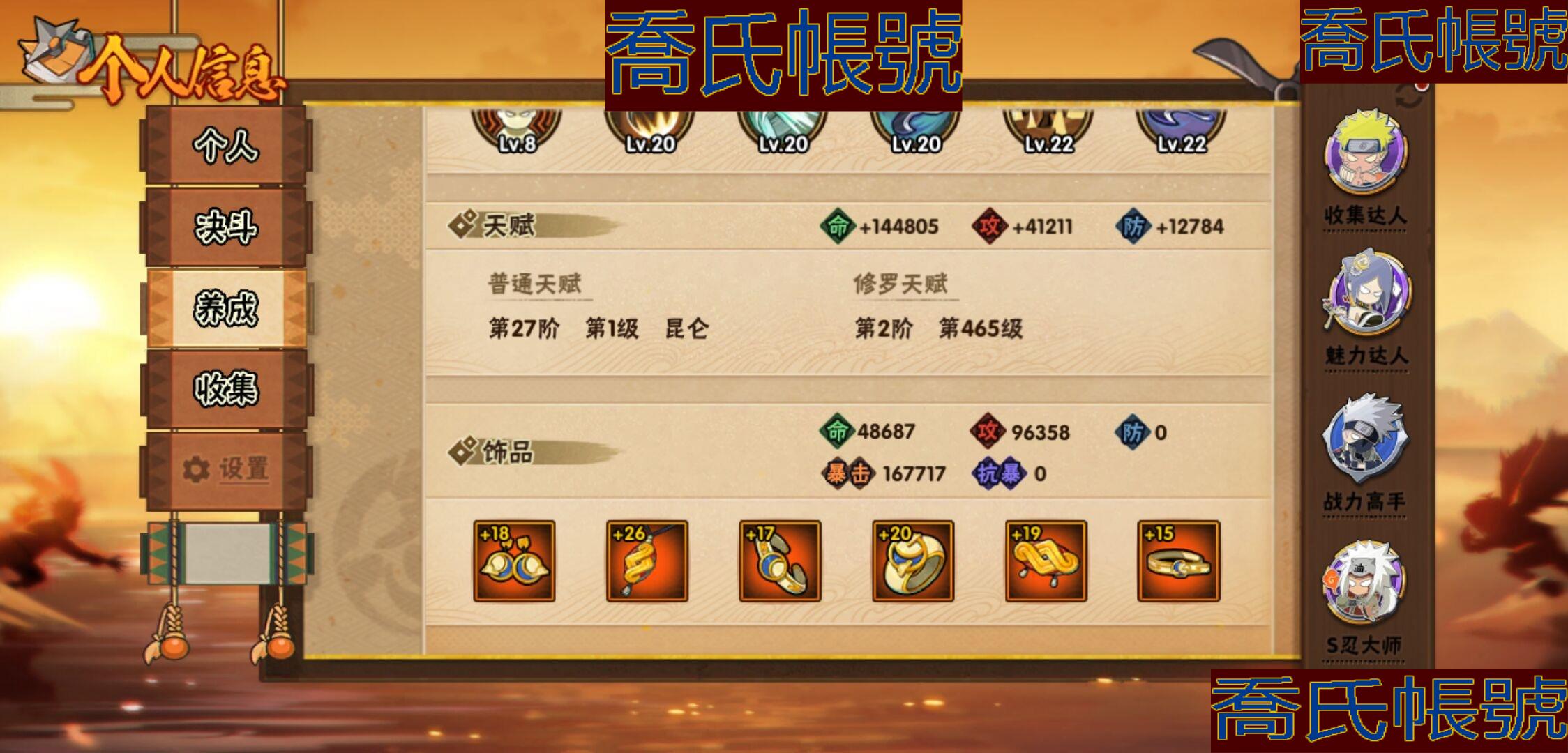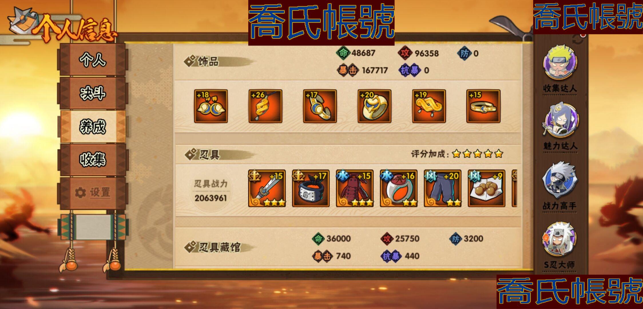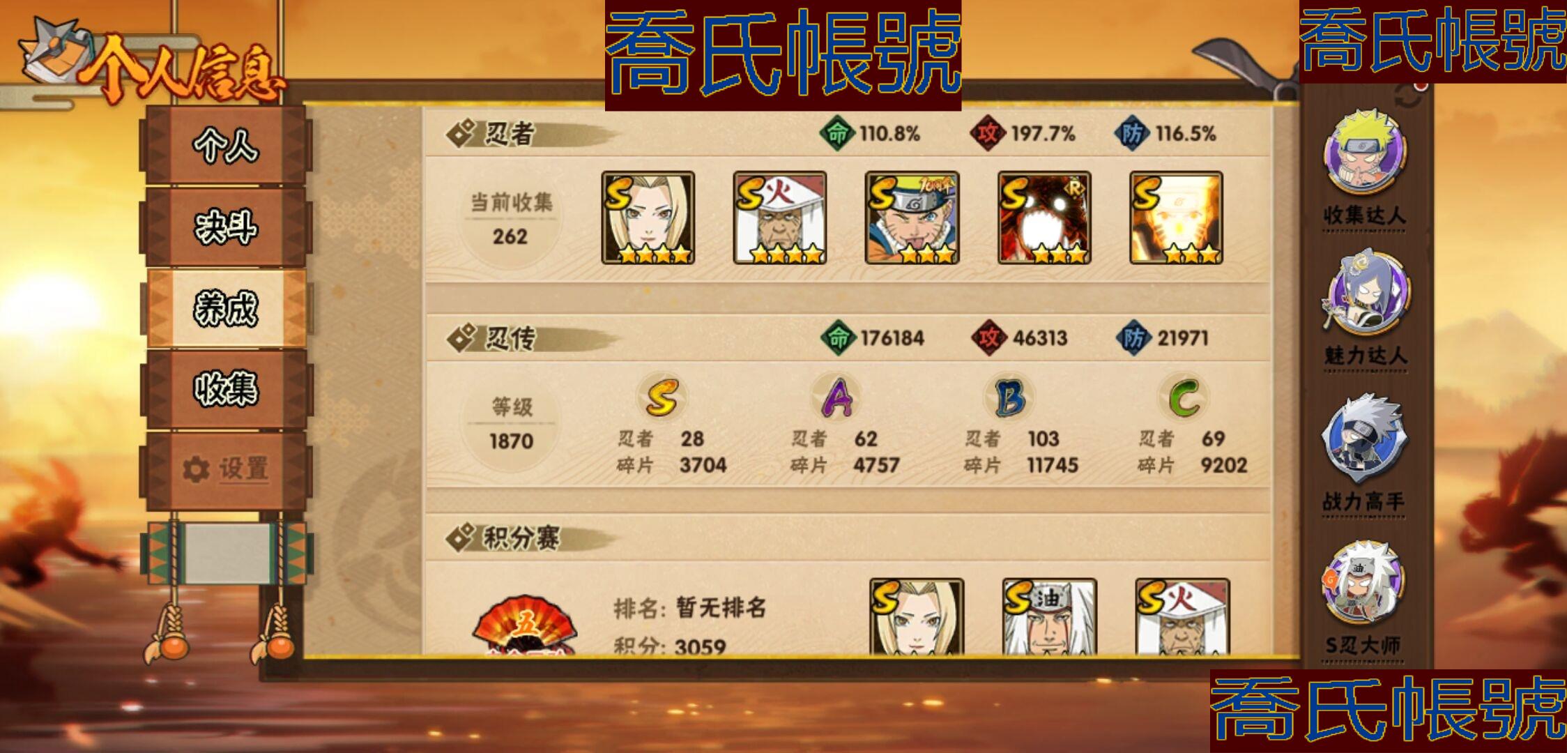 【OBHKAUE896642】S忍28個;A忍62個;時裝21個;通靈獸20個;秘卷47個;戰鬥力:1313W+;主場景1個;段位:上忍1階;本服排名:224;戰區排名:未上榜;VIP14級;S忍:白面具宇智波斑,忍界大戰宇智波帶土,穢土轉生千手扉間,超佩恩天道,九喇嘛連結波風水門,天道佩恩,漩渦鳴人宇智波佐助,木葉創立宇智波斑,永恆萬花筒宇智波佐助,舞之豪傑自來也,大蛇丸,綱手(4星),百豪綱手,波風水門,穢土轉生波風水門,穢土轉生宇智波斑,宇智波斑,須佐能乎宇智波鼬,穢土轉生半藏,穢土轉生金角銀角,二代目土影無,三代目雷影艾,仙人模式藥師兜,忍界大戰大野木,九喇嘛連結漩渦鳴人,猿飛日斬(4星),自來也,暴怒第六尾漩渦鳴人;A忍:青春爆炸邁特凱,仙人模式巳月,幻之真容旗木卡卡西,漂泊浪客佩恩六道,新春限定我愛羅,四代目土影黑土,猿飛木葉丸,青年長門,忍者之路神秘面具男,穢土轉生迪達拉,宇智波止水,新春限定宇智波止水,青年波風水門,青年艾,漂泊武士千手扉間,忍界大戰天天,忍界大戰旗木卡卡西,近松十人衛千代,夏日泳裝照美冥,曉創生角都,半蛇斗篷藥師兜,須佐能乎宇智波佐助,九尾查克拉漩渦鳴人,惡靈之影飛段,暴怒宇智波帶土,忍界大戰秋道丁次,忍界大戰我愛羅,穢土轉生猿飛阿斯瑪,疾風傳咒印宇智波佐助,新春限定宇智波鼬,奇拉比,萬花筒寫輪眼宇智波佐助,五代目水影照美冥,五代目雷影達魯伊,絕,死司憑血飛段,角都,地怨虞角都,疾風傳我愛羅(3星),迪達拉,飛段(4星),阿飛,小南,神駒佑將小南,仙人模式漩渦鳴人,旗木卡卡西,神威對決旗木卡卡西,邁特凱(5星),宇智波鼬,幹柿鬼鮫(4星),穢土轉生桃地再不斬,蠍(5星),緋流琥蠍,猿飛阿斯瑪(5星),最終章日向雛田,六代目水影長十郎,宇智波泉奈,羈絆神農,夏日限定黑土,忍界大戰土臺(3星),初始形態機械鳴人,俠隱江湖大野木;通靈獸:忍犬,藍蛇,蛤蟆吉,忍龜,鐮鼬,猿魔,山椒魚,蜃,蛞蝓,蛤蟆仙人,鮫鯊,蛤蟆健,烏鴉,蛤蟆龍,砂之守鶴,蛤蟆廣,夢貘,威裝須佐十週年,鷹,豚豚;時裝:百戰大蛇丸,宿命連結漩渦鳴人宇智波佐助,蜀面豪傑舞之豪傑自來也,百戰宇智波鼬須佐能乎,百戰佩恩天道,百戰波風水門,斑之附身神秘面具男忍者之路,太極靈韻日向花火武當宗師,滄瀾狂侍佩恩·六道漂泊浪客,編織虛實宇智波鼬,傳說的光芒波風水門,烈火華服宇智波止水新春限定,烈土霓裳黑土四代目土影,朱霞呈祥神駒佑將小南,純白之心白,驚雷掠影達魯伊五代目雷影,驕陽翠羽照美冥夏日泳裝,紅月映雪宇智波鼬新春限定,可愛睡衣漩渦鳴人,智勇記者宇智波佐良娜,龍的傳人李洛克截拳宗師;秘卷:土遁·地動,水遁·水龍捲,水遁·水貽拿原,雷遁·雷電擊,火遁·鬼燈籠,火遁·豪炎失,土遁·土柱爆,風遁·真空波,水遁·水衝波,通靈·返手裡劍,土遁·土流槍,雷遁·地走,土遁·巖落,通靈·護手裡劍,風遁·斬空波,通靈·雷光劍化,幻術·此處非之術,木遁·扦插之術,掌仙術·活,風遁·風殺陣,忍體術·反,封印術·四肢重封印,禁術·陰愈傷滅,封印術·除魔,冰遁·燕吹雪,水遁·水盾,木遁·一字連柱,幻術·黑暗行之術,冰遁·凍雪,火遁·裂炎彈,解術·散,水遁·水連彈,忍法·蛙變之術,忍體術·御,水遁·霧隱之術,冰遁·冰牢,忍體術·毅力,通靈·操手裡劍,細患抽離之術,解術·復,時空間忍術,忍體術·怒,風遁·氣旋,秘卷·查克拉,冰遁·爆雪,幻術·時間回溯,雷遁·四柱束縛;主場景:博人傳;詳情看圖【1273】【安卓QQ】【不可二次實名】【官方截圖】帶土92迪達拉39忍戰零次39其他還有很多