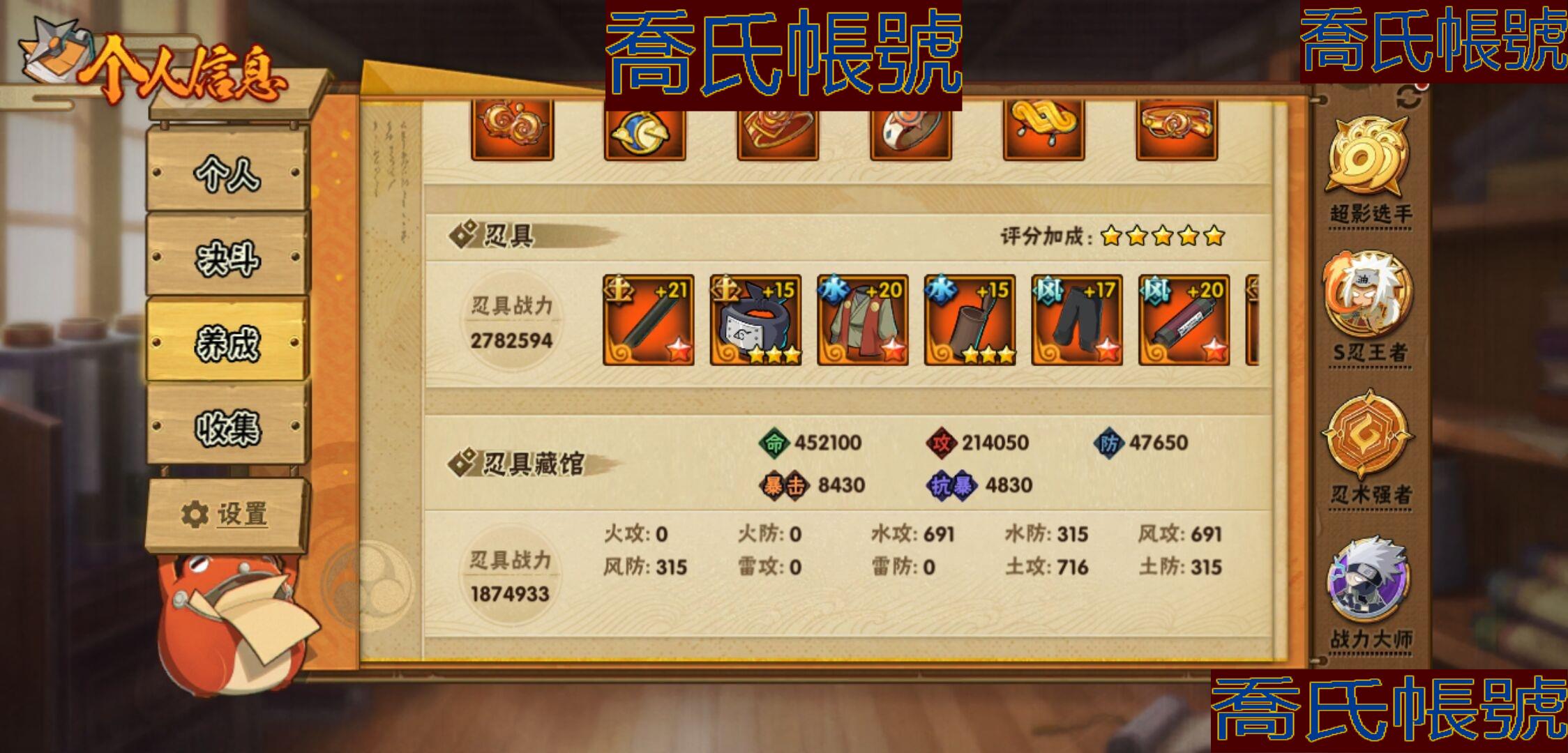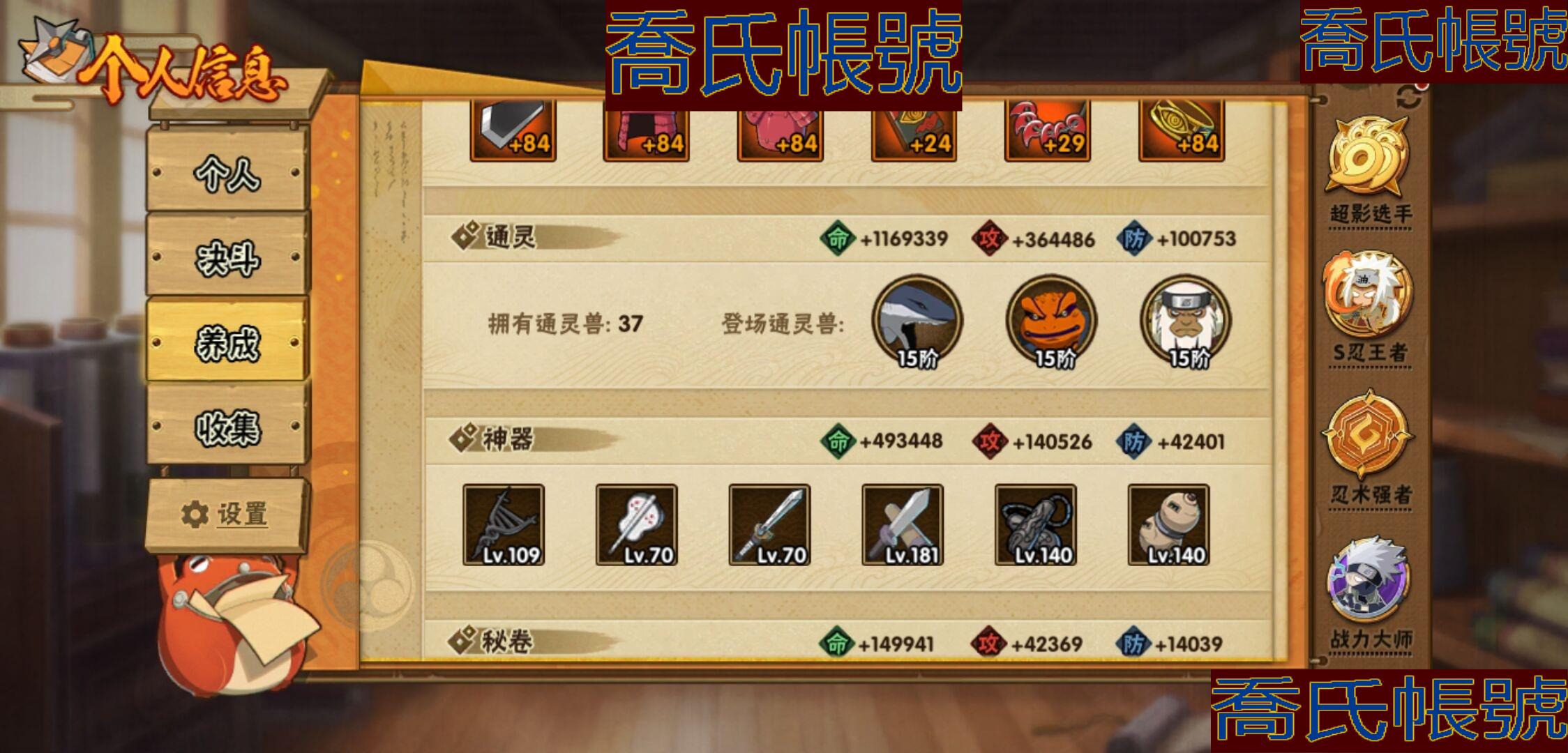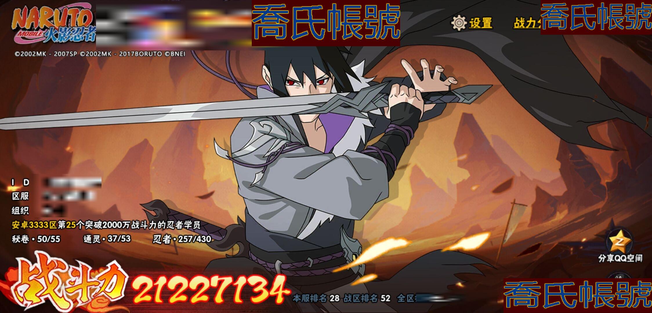 【OBHKAUE924942】S忍32個;A忍50個;時裝22個;通靈獸37個;秘卷45個;戰鬥力:2122W+;主場景2個;段位:上忍3階;本服排名:28;戰區排名:52;VIP15級;S忍:穢土轉生解宇智波斑,白面具宇智波斑,須佐能乎旗木卡卡西,超佩恩天道,九喇嘛連結波風水門,五影會談宇智波斑,天道佩恩,傳說中的三忍自來也,漩渦鳴人宇智波佐助,須佐能乎宇智波止水,穢土轉生千手柱間,木葉創立宇智波斑,永恆萬花筒宇智波佐助,最終章大筒木舍人,仙人模式自來也,木葉創立千手柱間,舞之豪傑自來也,大蛇丸,綱手,波風水門(5星),須佐能乎宇智波鼬(4星),紅夜之刃神秘面具男,穢土轉生長門,四代目風影羅砂,忍界大戰春野櫻,大筒木金式,大筒木桃式,猿飛日斬(4星),穢土轉生猿飛日斬,自來也,暴怒第六尾漩渦鳴人,初代目風影烈鬥;A忍:青春爆炸邁特凱,漂泊浪客宇智波帶土,仙人模式巳月,俠隱江湖宇智波佐助,俠隱江湖綱手,忍界大戰李洛克,漂泊浪客佩恩六道,新春限定我愛羅,穢土轉生角都,忍界大戰日向寧次,火之意志繼承者卑留呼,青年長門,忍者之路神秘面具男,新春限定宇智波止水,不風,漂泊武士千手扉間,漂泊武士桃地再不斬,近松十人衛千代,夏日泳裝照美冥,新春限定小南,曉大蛇丸,百豪春野櫻,忍界大戰秋道丁次,夏日泳裝小南,萬花筒寫輪眼宇智波佐助,黑絕,死司憑血飛段,疾風傳我愛羅(3星),迪達拉,飛段(3星),漂泊浪客小南,旗木卡卡西(3星),神威對決旗木卡卡西,邁特凱(5星),宇智波鼬,夏日限定宇智波鼬,幹柿鬼鮫(5星),穢土轉生桃地再不斬,蠍(5星),緋流琥蠍,猿飛阿斯瑪(5星),桃式顯現漩渦博人,最終章日向雛田,六代目水影長十郎,不緣,宇智波泉奈,羈絆神農,夏日限定黑土,忍界大戰土臺,初始形態機械鳴人;通靈獸:忍犬,怒鬼爪,藍蛇,蛤蟆吉,忍龜,砂之守鶴,鐮鼬,猿魔,山椒魚,蛞蝓,蜃,蛤蟆仙人,鮫鯊,熊貓,蛤蟆健,烏鴉,蛞蝓俠隱江湖,蛤蟆龍,螃蟹,怒鬼無臂,祥瑞金烏,守鶴,六尾犀犬,蛤蟆廣,夢貘,辛牙,鷹,萬蛇,蜘蛛,獄閻王,變色龍,鵺,零尾,威裝須佐十週年,豚豚,怒鬼;時裝:蜀面豪傑舞之豪傑自來也,宿命連結漩渦鳴人宇智波佐助,百戰佩恩天道,百戰宇智波鼬須佐能乎,晨昏神使小南漂泊浪客2,太極靈韻日向花火武當宗師,斑之附身神秘面具男忍者之路,睿勇新星千手扉間少年,血紅辣椒旋渦玖辛奈少女png,烈火華服宇智波止水新春限定,命定之戰宇智波佐助疾風傳,緋櫻綻放春野櫻百豪,飛瀑流泉長十郎六代目水影,烈土霓裳黑土四代目土影,土之固守大野木三代目土影,血霧怪人幹柿鬼鮫,朱霞呈祥神駒佑將小南,驕陽翠羽照美冥夏日泳裝,風之守護我愛羅忍界大戰,驚雷掠影達魯伊五代目雷影,熊貓少女天天峨眉宗師,龍的傳人李洛克截拳宗師;秘卷:風遁·真空波,土遁·地動,土遁·土柱爆,土遁·巖落,水遁·水貽拿原,通靈·護手裡劍,風遁·斬空波,雷遁·地走,通靈·返手裡劍,水遁·水龍捲,火遁·鬼燈籠,水遁·水衝波,火遁·豪炎失,土遁·土流槍,雷遁·雷電擊,木遁·扦插之術,幻術·黑暗行之術,封印術·四肢重封印,忍體術·反,冰遁·凍雪,冰遁·燕吹雪,木遁·一字連柱,掌仙術·活,幻術·此處非之術,通靈·雷光劍化,禁術·陰愈傷滅,解術·散,火遁·裂炎彈,封印術·除魔,水遁·水盾,風遁·風殺陣,通靈·操手裡劍,影分身之術,解術·復,掌仙術·振奮,水遁·霧隱之術,水遁·水氣球,忍體術·御,忍體術·怒,忍法·蛙變之術,風遁·氣旋,雷遁·雷電門,忍體術·毅力,幻術·一葉障,秘卷·查克拉;主場景:最終章,博人傳;詳情看圖【3333】【安卓QQ】【可二次實名】【官方截圖】超影服務三個月,月卡已續,忍法帖已開,這期大概可以補出二代水影