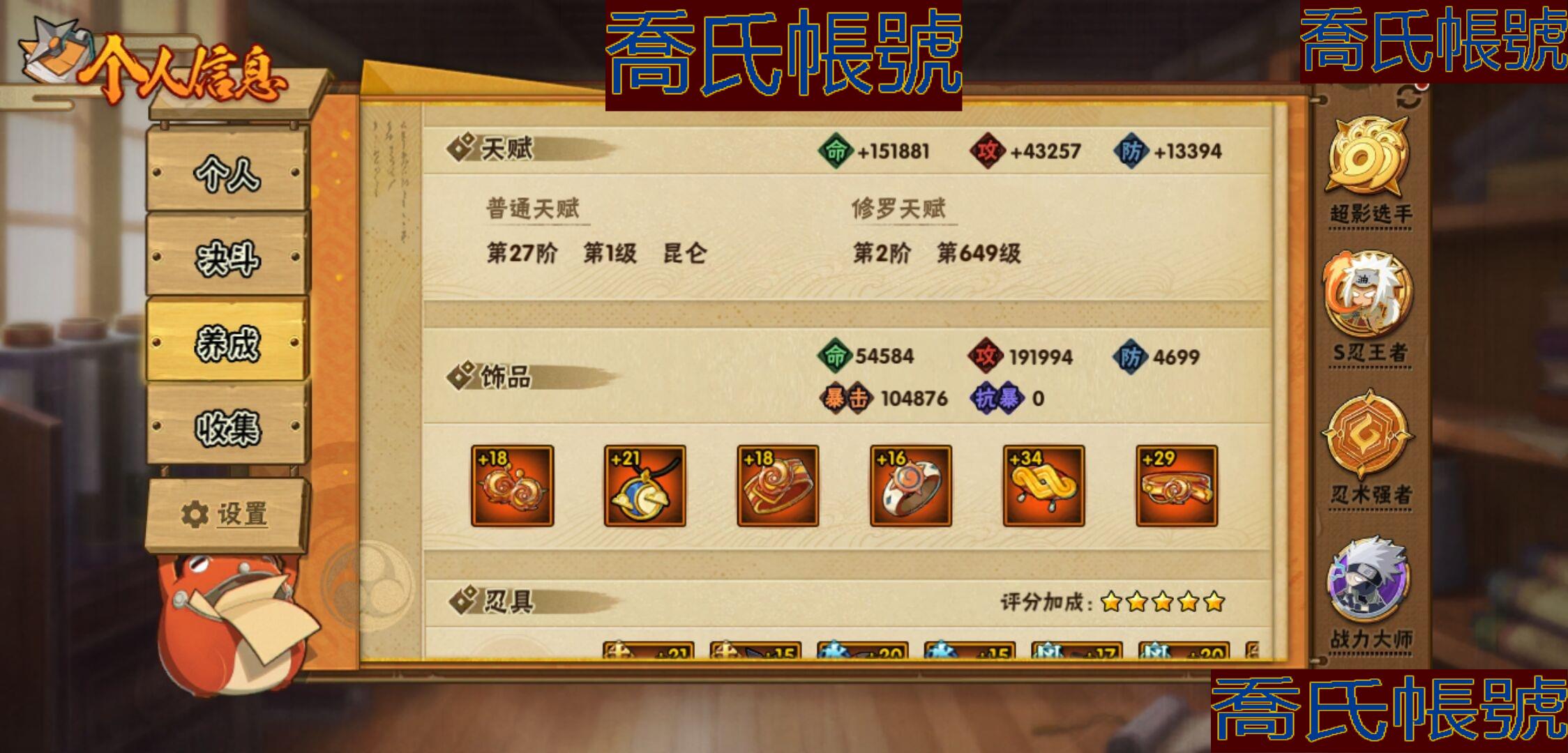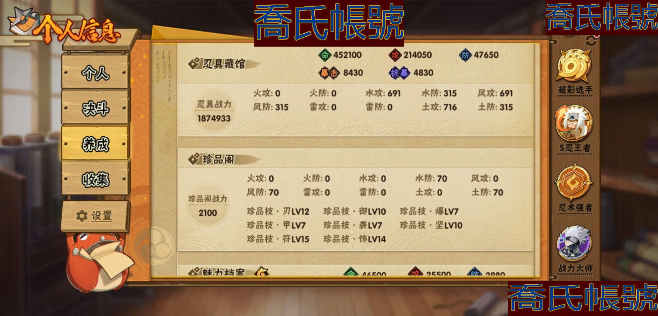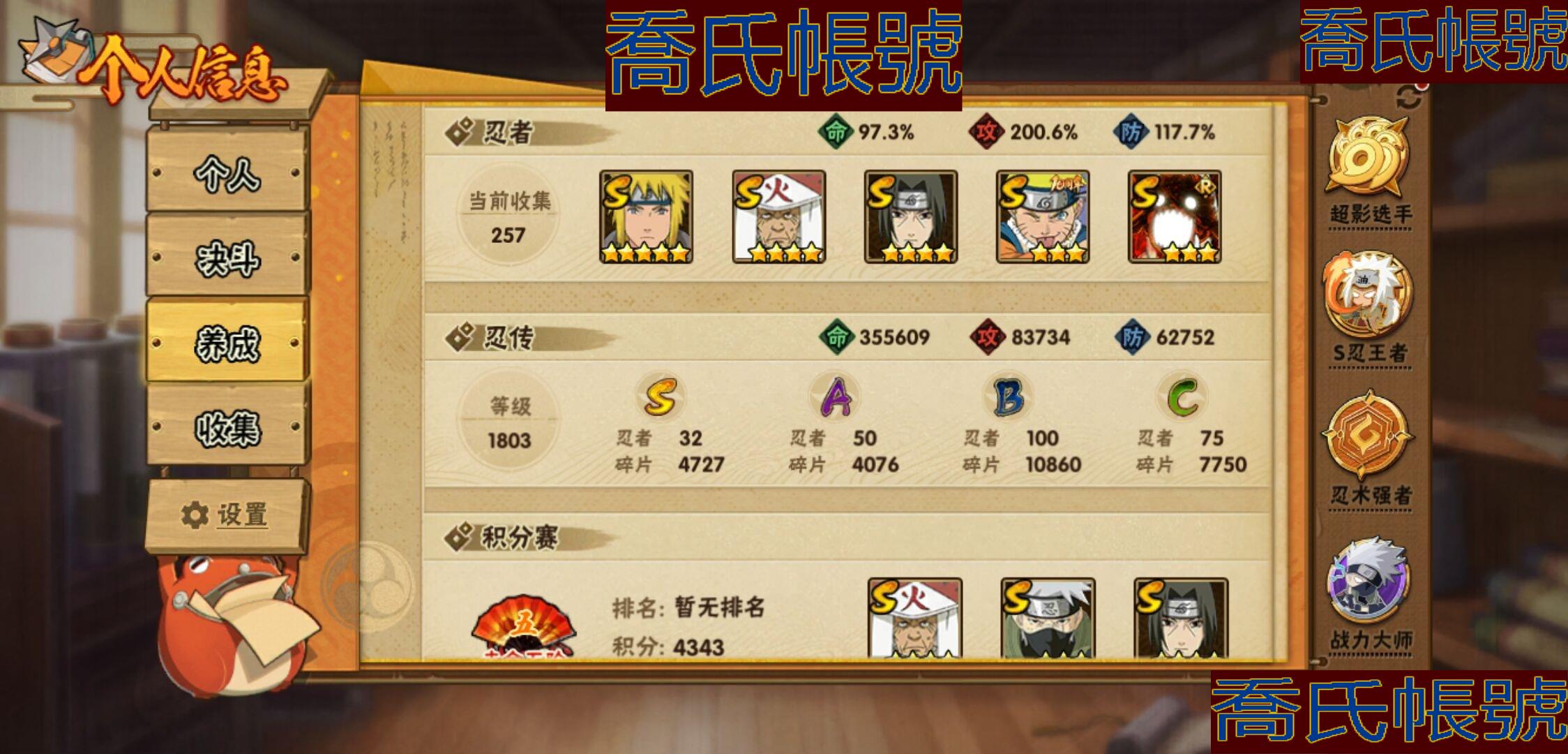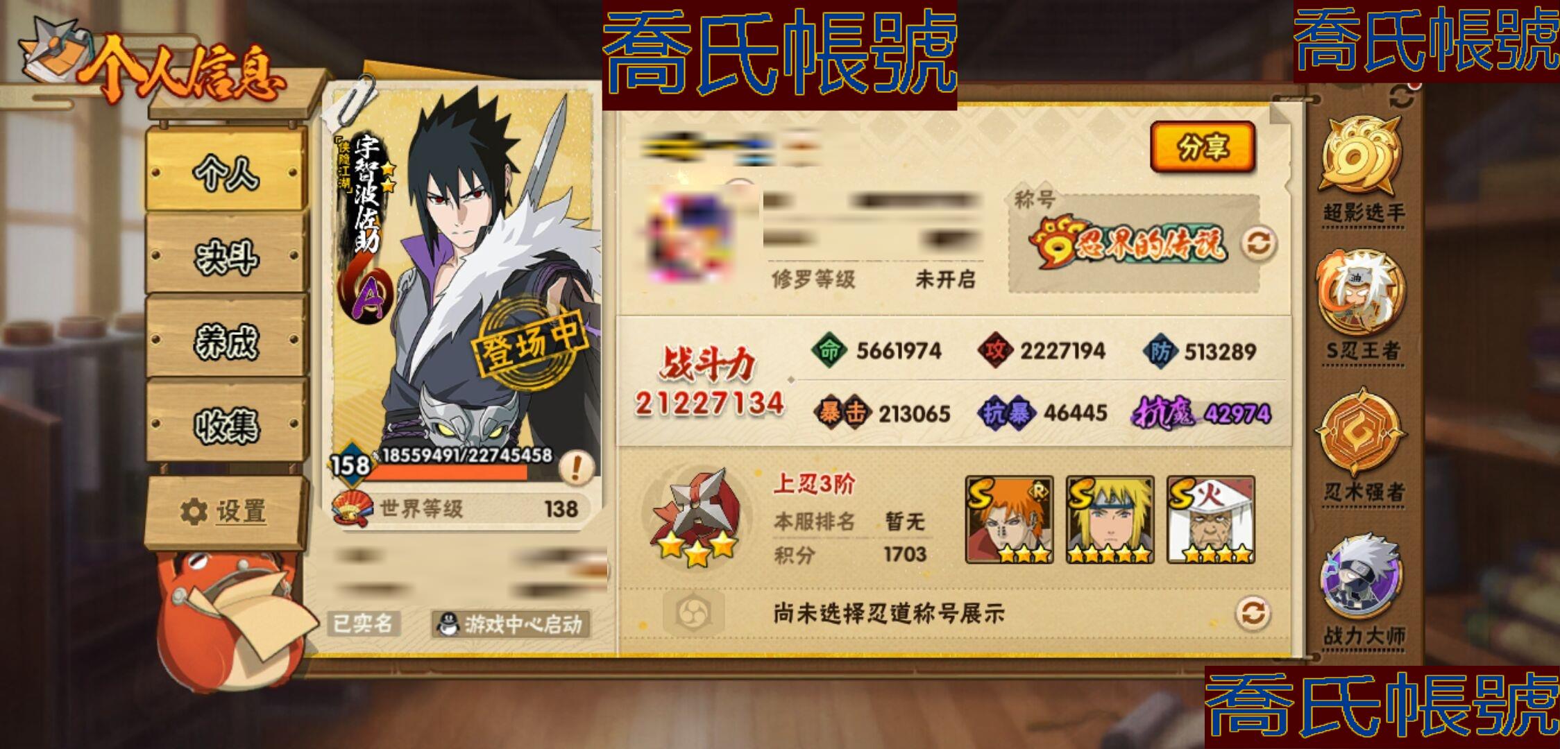 【OBHKAUE924942】S忍32個;A忍50個;時裝22個;通靈獸37個;秘卷45個;戰鬥力:2122W+;主場景2個;段位:上忍3階;本服排名:28;戰區排名:52;VIP15級;S忍:穢土轉生解宇智波斑,白面具宇智波斑,須佐能乎旗木卡卡西,超佩恩天道,九喇嘛連結波風水門,五影會談宇智波斑,天道佩恩,傳說中的三忍自來也,漩渦鳴人宇智波佐助,須佐能乎宇智波止水,穢土轉生千手柱間,木葉創立宇智波斑,永恆萬花筒宇智波佐助,最終章大筒木舍人,仙人模式自來也,木葉創立千手柱間,舞之豪傑自來也,大蛇丸,綱手,波風水門(5星),須佐能乎宇智波鼬(4星),紅夜之刃神秘面具男,穢土轉生長門,四代目風影羅砂,忍界大戰春野櫻,大筒木金式,大筒木桃式,猿飛日斬(4星),穢土轉生猿飛日斬,自來也,暴怒第六尾漩渦鳴人,初代目風影烈鬥;A忍:青春爆炸邁特凱,漂泊浪客宇智波帶土,仙人模式巳月,俠隱江湖宇智波佐助,俠隱江湖綱手,忍界大戰李洛克,漂泊浪客佩恩六道,新春限定我愛羅,穢土轉生角都,忍界大戰日向寧次,火之意志繼承者卑留呼,青年長門,忍者之路神秘面具男,新春限定宇智波止水,不風,漂泊武士千手扉間,漂泊武士桃地再不斬,近松十人衛千代,夏日泳裝照美冥,新春限定小南,曉大蛇丸,百豪春野櫻,忍界大戰秋道丁次,夏日泳裝小南,萬花筒寫輪眼宇智波佐助,黑絕,死司憑血飛段,疾風傳我愛羅(3星),迪達拉,飛段(3星),漂泊浪客小南,旗木卡卡西(3星),神威對決旗木卡卡西,邁特凱(5星),宇智波鼬,夏日限定宇智波鼬,幹柿鬼鮫(5星),穢土轉生桃地再不斬,蠍(5星),緋流琥蠍,猿飛阿斯瑪(5星),桃式顯現漩渦博人,最終章日向雛田,六代目水影長十郎,不緣,宇智波泉奈,羈絆神農,夏日限定黑土,忍界大戰土臺,初始形態機械鳴人;通靈獸:忍犬,怒鬼爪,藍蛇,蛤蟆吉,忍龜,砂之守鶴,鐮鼬,猿魔,山椒魚,蛞蝓,蜃,蛤蟆仙人,鮫鯊,熊貓,蛤蟆健,烏鴉,蛞蝓俠隱江湖,蛤蟆龍,螃蟹,怒鬼無臂,祥瑞金烏,守鶴,六尾犀犬,蛤蟆廣,夢貘,辛牙,鷹,萬蛇,蜘蛛,獄閻王,變色龍,鵺,零尾,威裝須佐十週年,豚豚,怒鬼;時裝:蜀面豪傑舞之豪傑自來也,宿命連結漩渦鳴人宇智波佐助,百戰佩恩天道,百戰宇智波鼬須佐能乎,晨昏神使小南漂泊浪客2,太極靈韻日向花火武當宗師,斑之附身神秘面具男忍者之路,睿勇新星千手扉間少年,血紅辣椒旋渦玖辛奈少女png,烈火華服宇智波止水新春限定,命定之戰宇智波佐助疾風傳,緋櫻綻放春野櫻百豪,飛瀑流泉長十郎六代目水影,烈土霓裳黑土四代目土影,土之固守大野木三代目土影,血霧怪人幹柿鬼鮫,朱霞呈祥神駒佑將小南,驕陽翠羽照美冥夏日泳裝,風之守護我愛羅忍界大戰,驚雷掠影達魯伊五代目雷影,熊貓少女天天峨眉宗師,龍的傳人李洛克截拳宗師;秘卷:風遁·真空波,土遁·地動,土遁·土柱爆,土遁·巖落,水遁·水貽拿原,通靈·護手裡劍,風遁·斬空波,雷遁·地走,通靈·返手裡劍,水遁·水龍捲,火遁·鬼燈籠,水遁·水衝波,火遁·豪炎失,土遁·土流槍,雷遁·雷電擊,木遁·扦插之術,幻術·黑暗行之術,封印術·四肢重封印,忍體術·反,冰遁·凍雪,冰遁·燕吹雪,木遁·一字連柱,掌仙術·活,幻術·此處非之術,通靈·雷光劍化,禁術·陰愈傷滅,解術·散,火遁·裂炎彈,封印術·除魔,水遁·水盾,風遁·風殺陣,通靈·操手裡劍,影分身之術,解術·復,掌仙術·振奮,水遁·霧隱之術,水遁·水氣球,忍體術·御,忍體術·怒,忍法·蛙變之術,風遁·氣旋,雷遁·雷電門,忍體術·毅力,幻術·一葉障,秘卷·查克拉;主場景:最終章,博人傳;詳情看圖【3333】【安卓QQ】【可二次實名】【官方截圖】超影服務三個月,月卡已續,忍法帖已開,這期大概可以補出二代水影