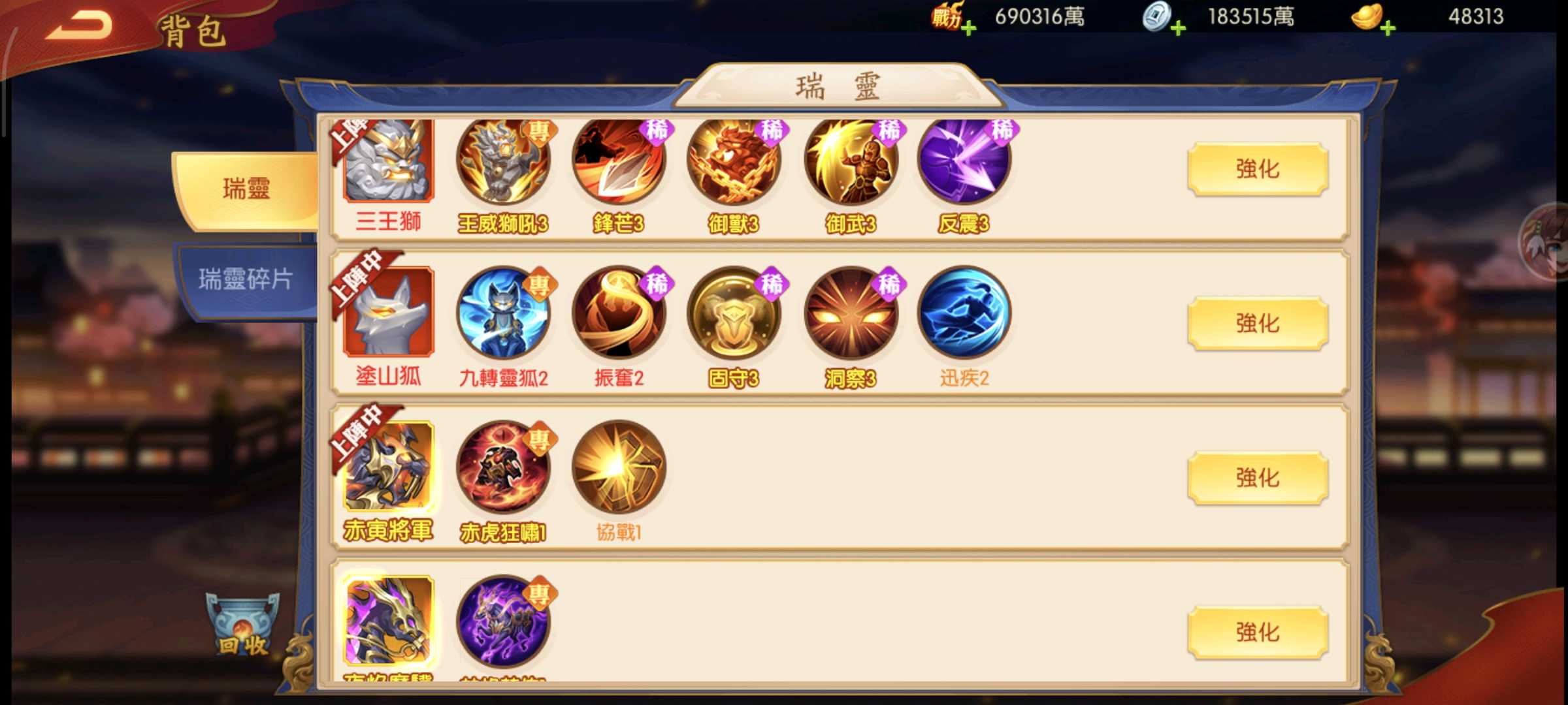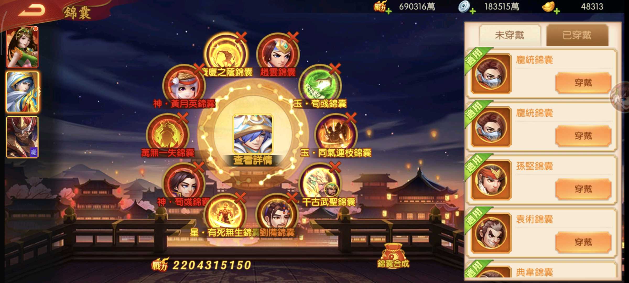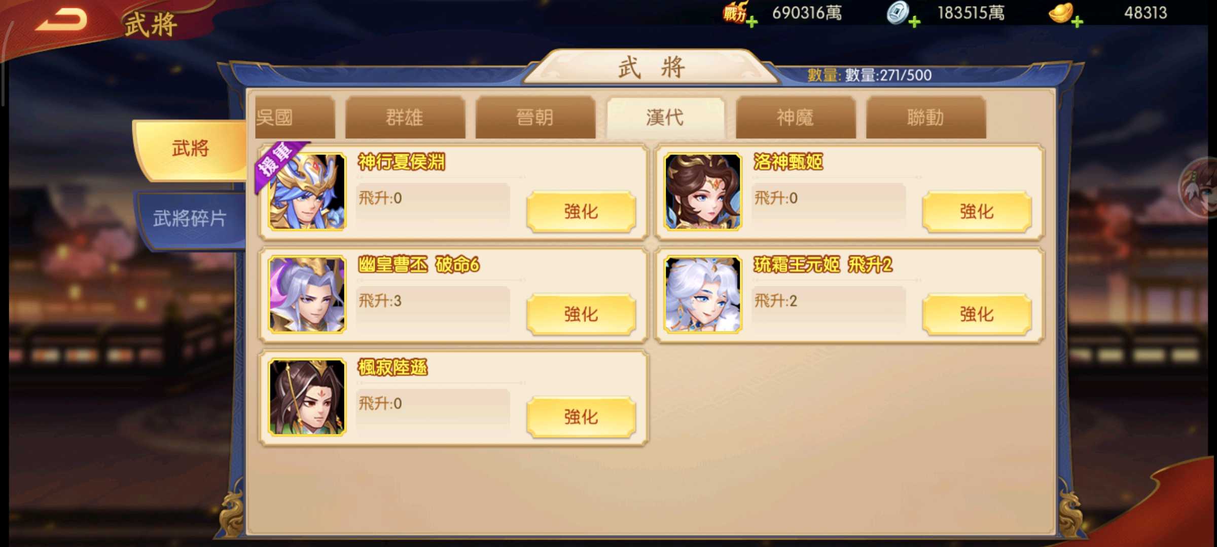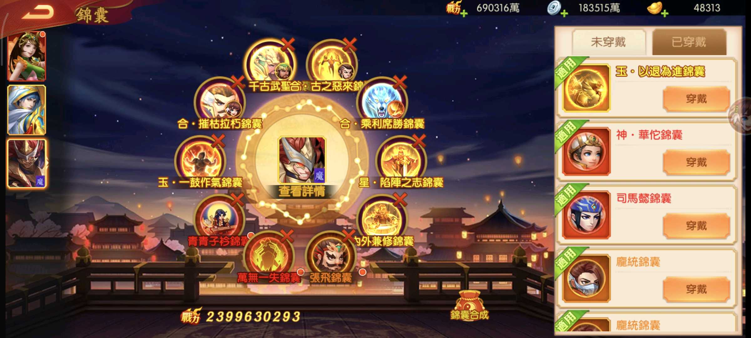 神魔顛三、魔曹操未拿,背包有105碎片箱漢圖鑑79趴