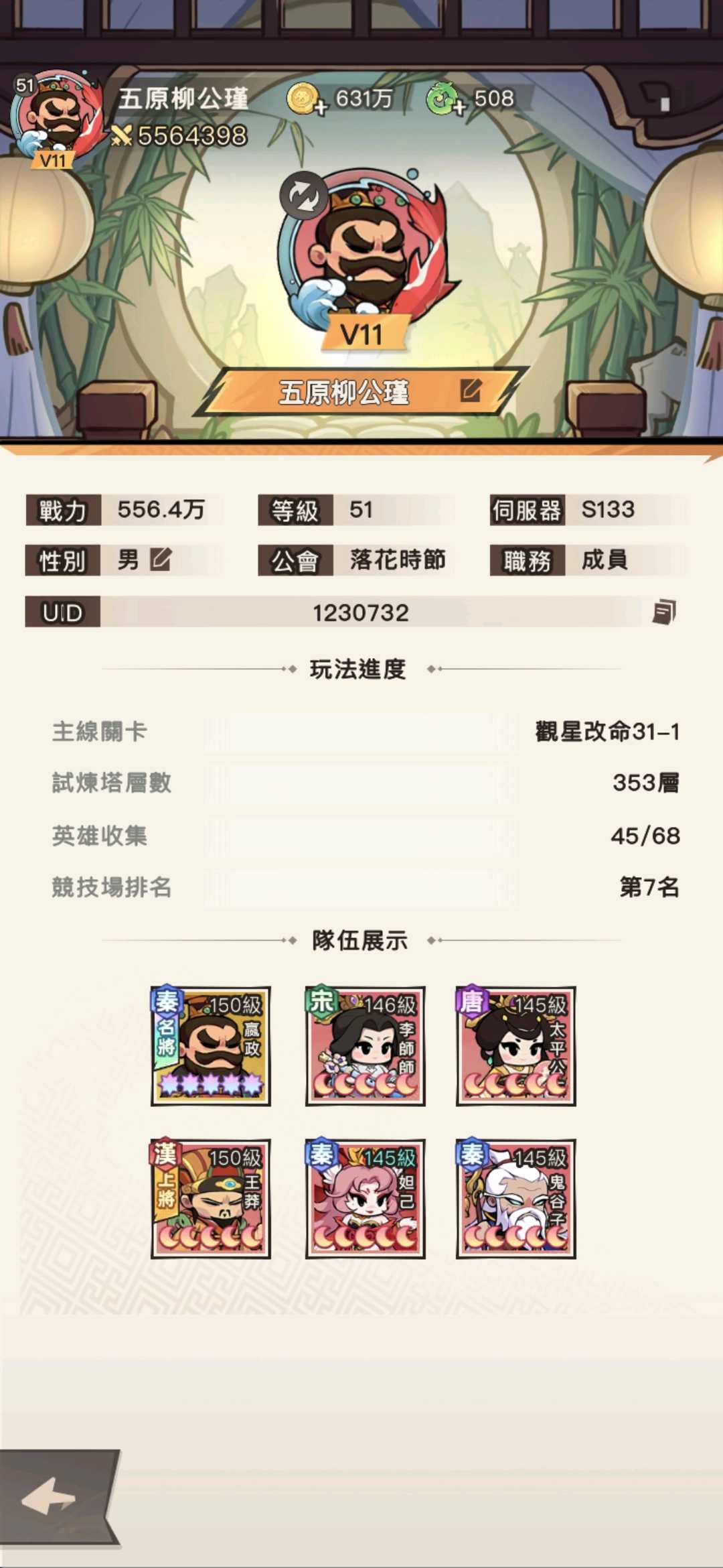 帳號 【51等】 S133 51 等 V11 戰力榜第9 暫時掛上面 號主先繼續玩
