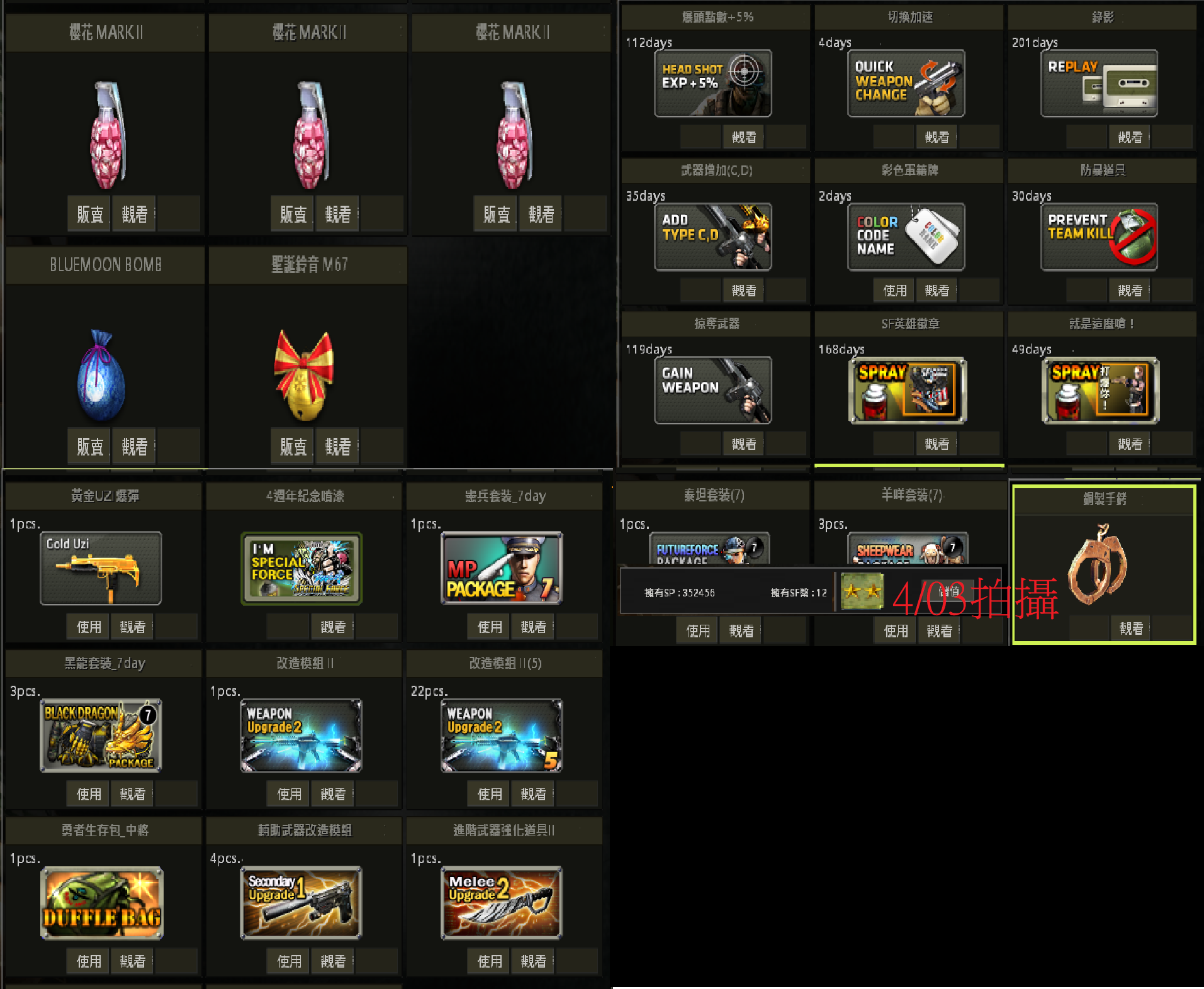 售出前持續遊玩 SP道具會有所變動