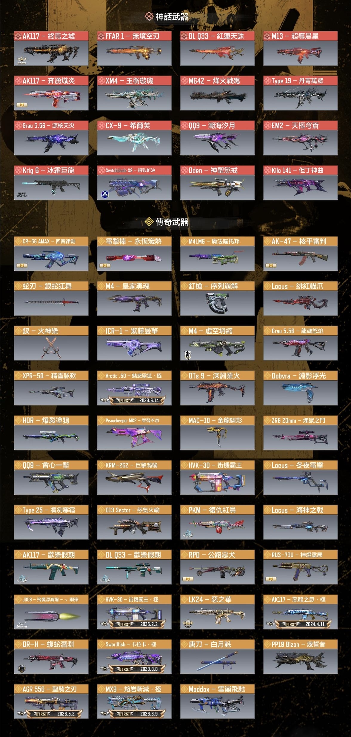 神話(紅)16、紅滿4、典藏(橙)6、傳奇(橙)43