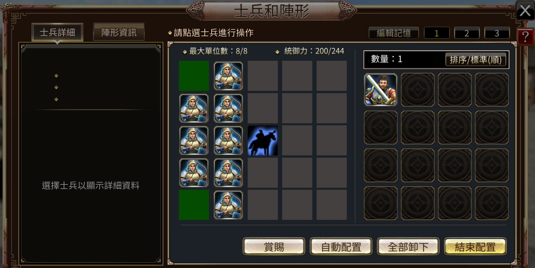帶一組精銳弓兵(素質都有挑過), 銅幣1500萬