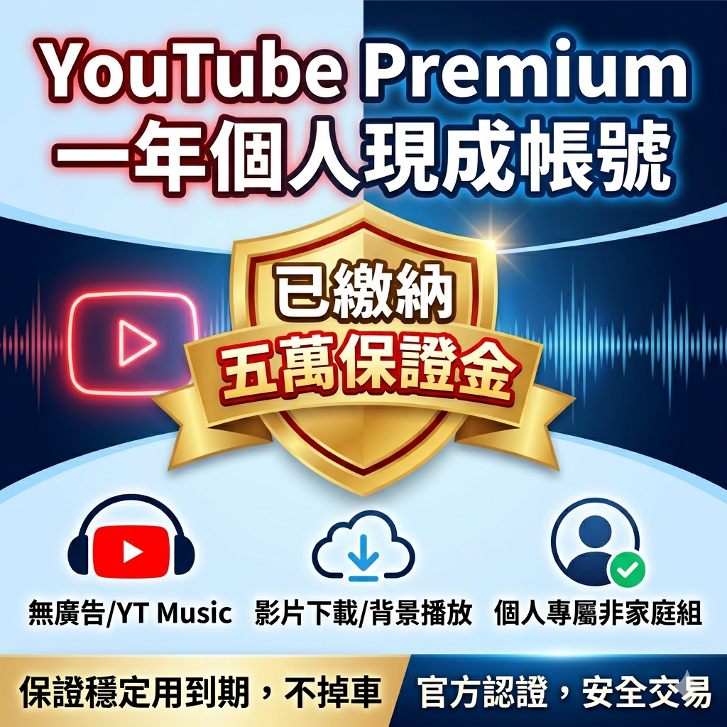 販售的是 「已開通好整整一年 YouTube Premium 資格」 的全新 Google 帳號。