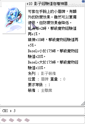 +20影子經驗手套+盾牌(CRI+7)