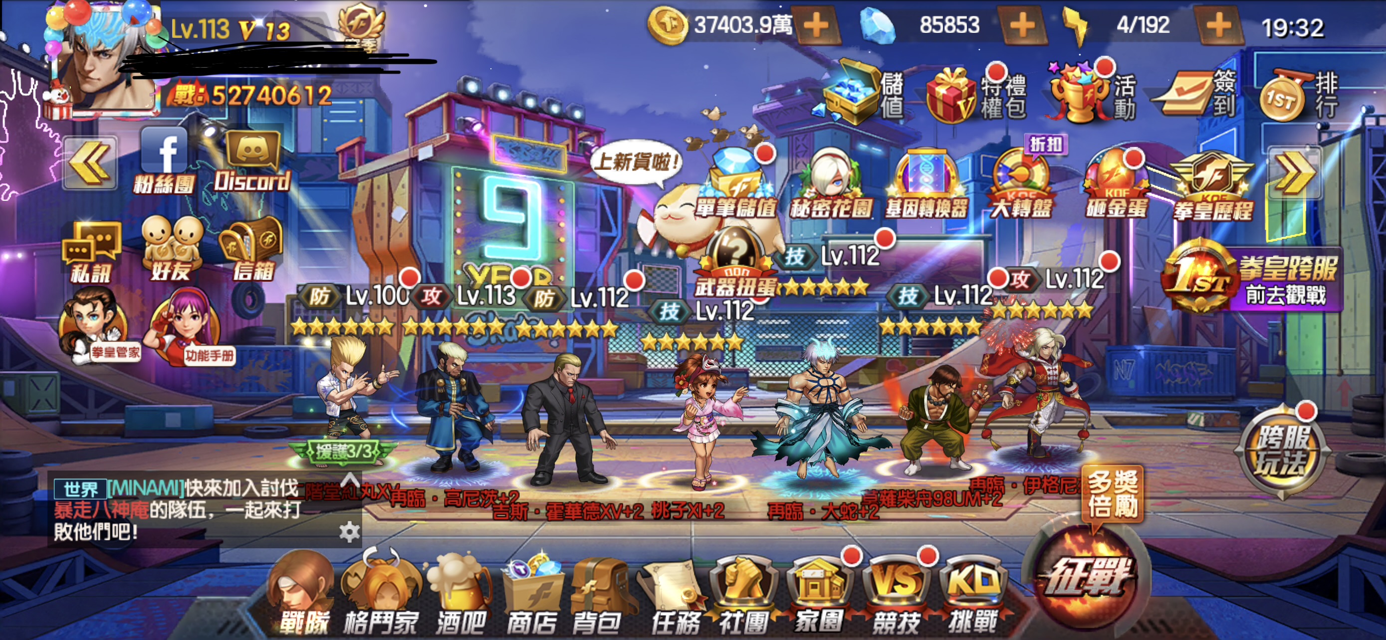 拳皇98終極之戰(售號)113等 有紅包號 資源足夠 上陣角色皆六門 對帳號有疑問也可以私訊