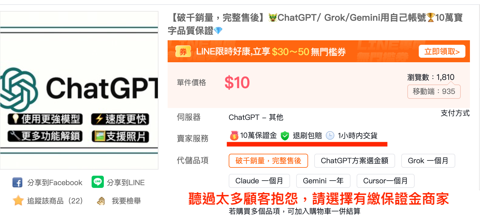 提醒⚠️:請務必留意帳號來源,避免受騙!