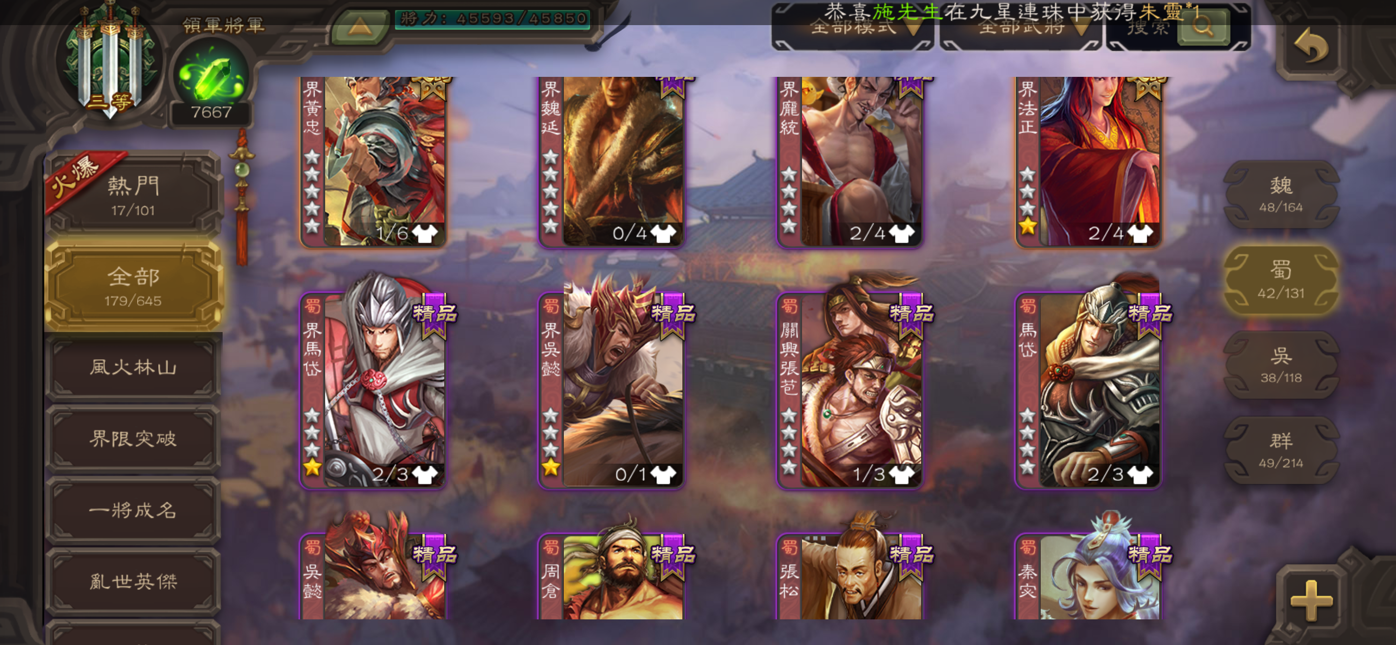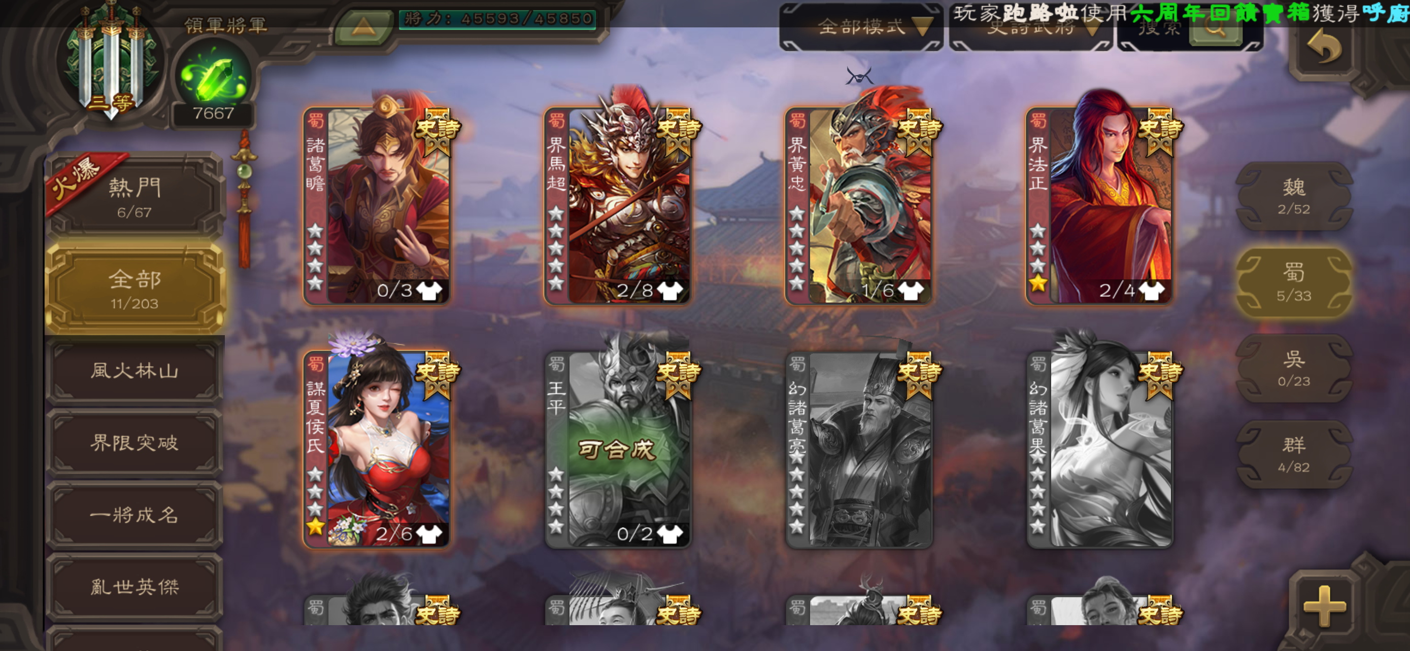 【41等】幻劉禪 徐榮 史詩自選號
