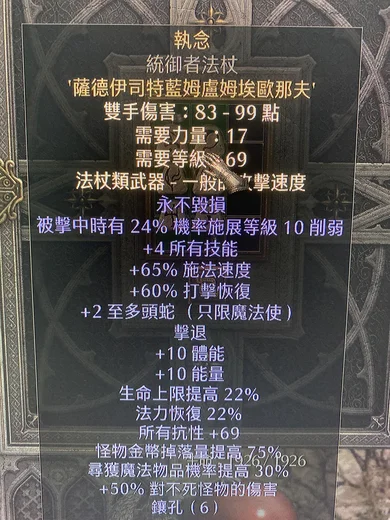 非天梯 執念 22%生命上限 22%法力恢復 69全抗