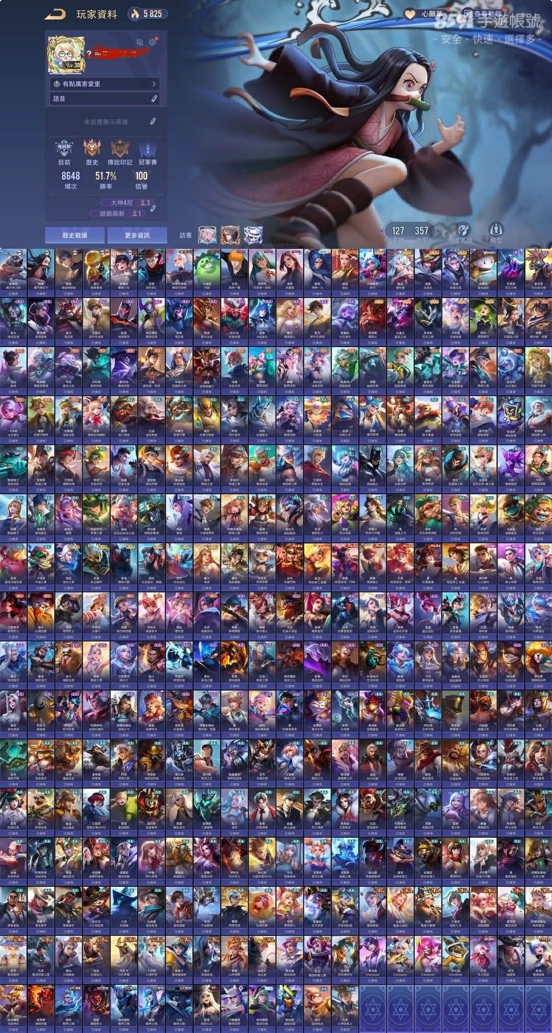 帳號 【Garena帳有綁定、鑽石、V9、127英、357造】 Garena帳號V9 357造 善逸 彌豆子 緋淚櫻吹雪 星際議會 多直購