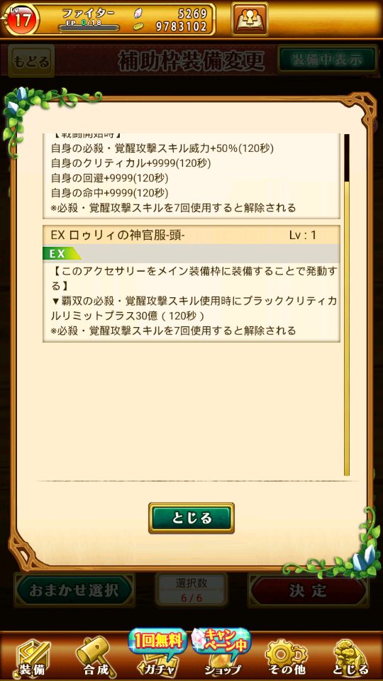 帳號內還有很多其他究極裝備可以放輔助欄