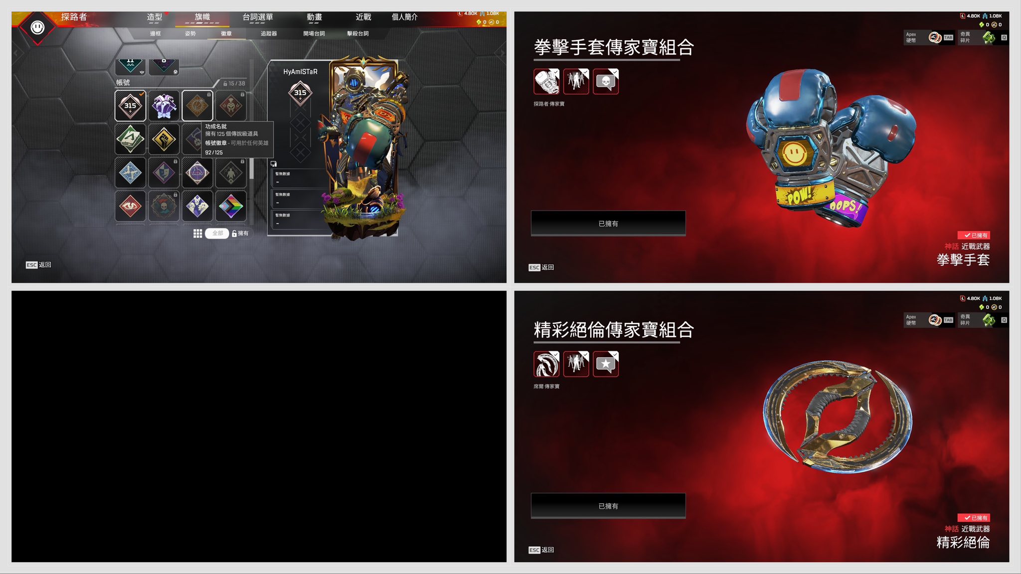 帳號 【315等、2傳、0威、92金】 探路者 + 席爾 餘震301 / 龍族CAR / 至尊三重擊 / 噴火進化皮