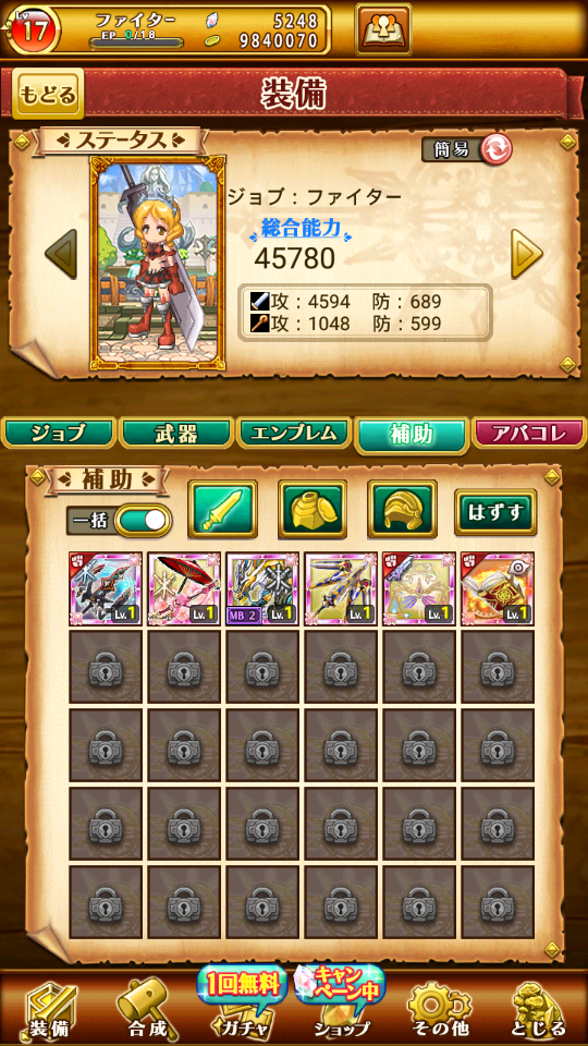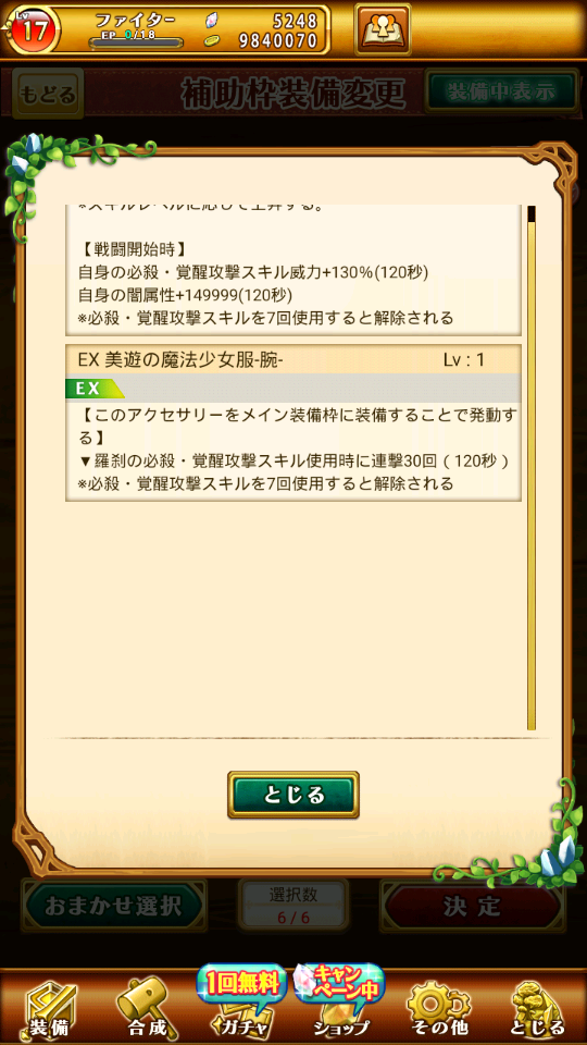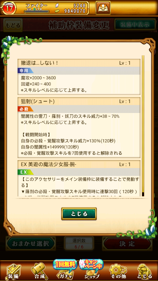 帳號內還有很多其他究極裝備可以放輔助欄